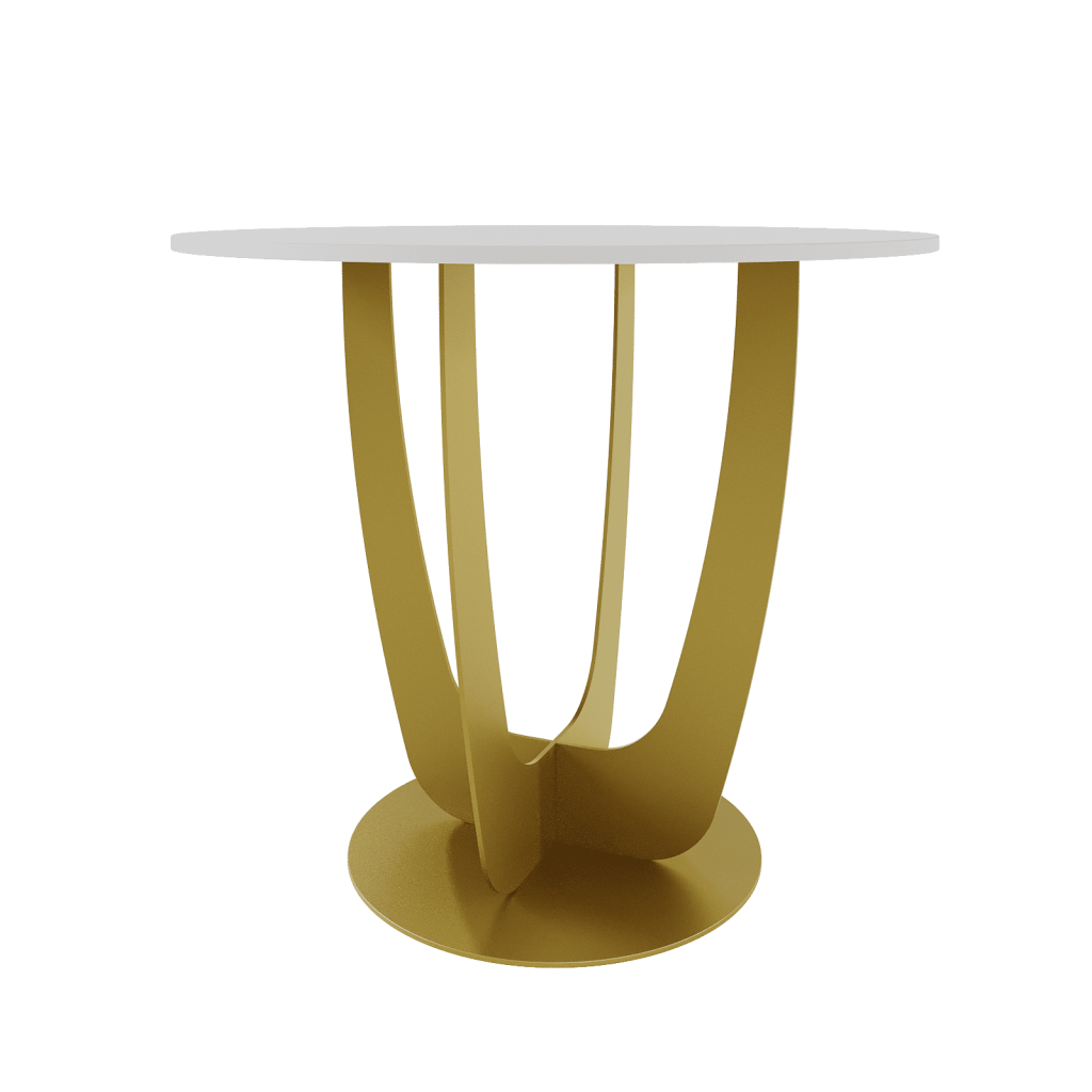 Дизайнерский круглый стол с металлическим подстольем якорь. Стол YAKRIS сочетает стильный дизайн и практическую функциональность для любого интерьера. Столешница ЛДСП 1,6 см белого цвета. Стандартный вариант – матовая порошковая окраска в золотой, чёрный или белый цвет. Может использоваться как кухонный стол для вашего дома, так и переговорный круглый стол для офиса. За столом комфортно разместится 2-4 человека.