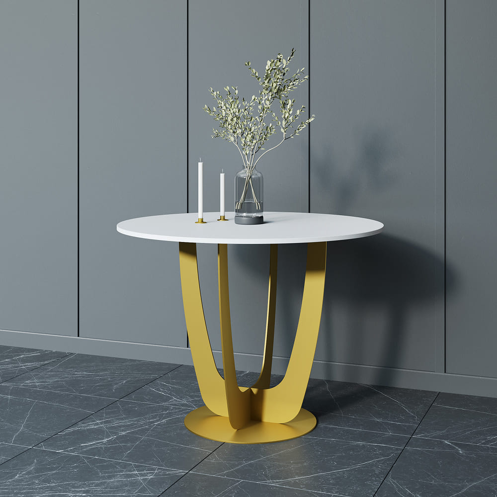 • Обеденный стол YAKRIS D100 см, белый/золотой