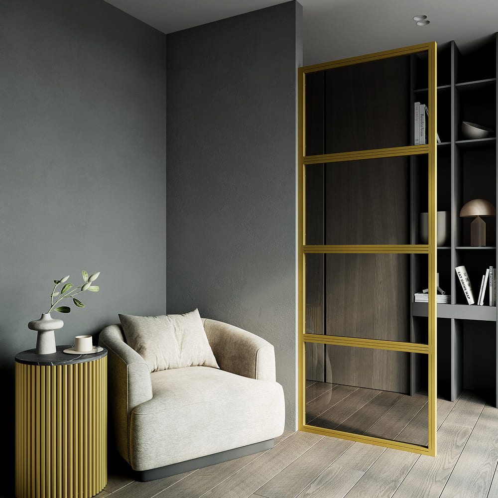 Лофт-перегородки ZONIQUE сочетают стиль, функциональность и элегантность в современном интерьере. Металлический профиль 2×4 см и закалённое стекло 0.4 см обеспечивают прочность и легкость. Тонированное стекло добавляет изюминку внешнему виду пространства. Так же стекло гарантирует безопасность, исключая риск травм при ударах. Цветовая гамма включает матовую порошковую окраску в золотом, черном и белом цветах. Уплотнители из ПВХ обеспечивают максимальную герметичность конструкции. Универсальная установка позволяет зонировать помещение, сохраняя ощущение простора.