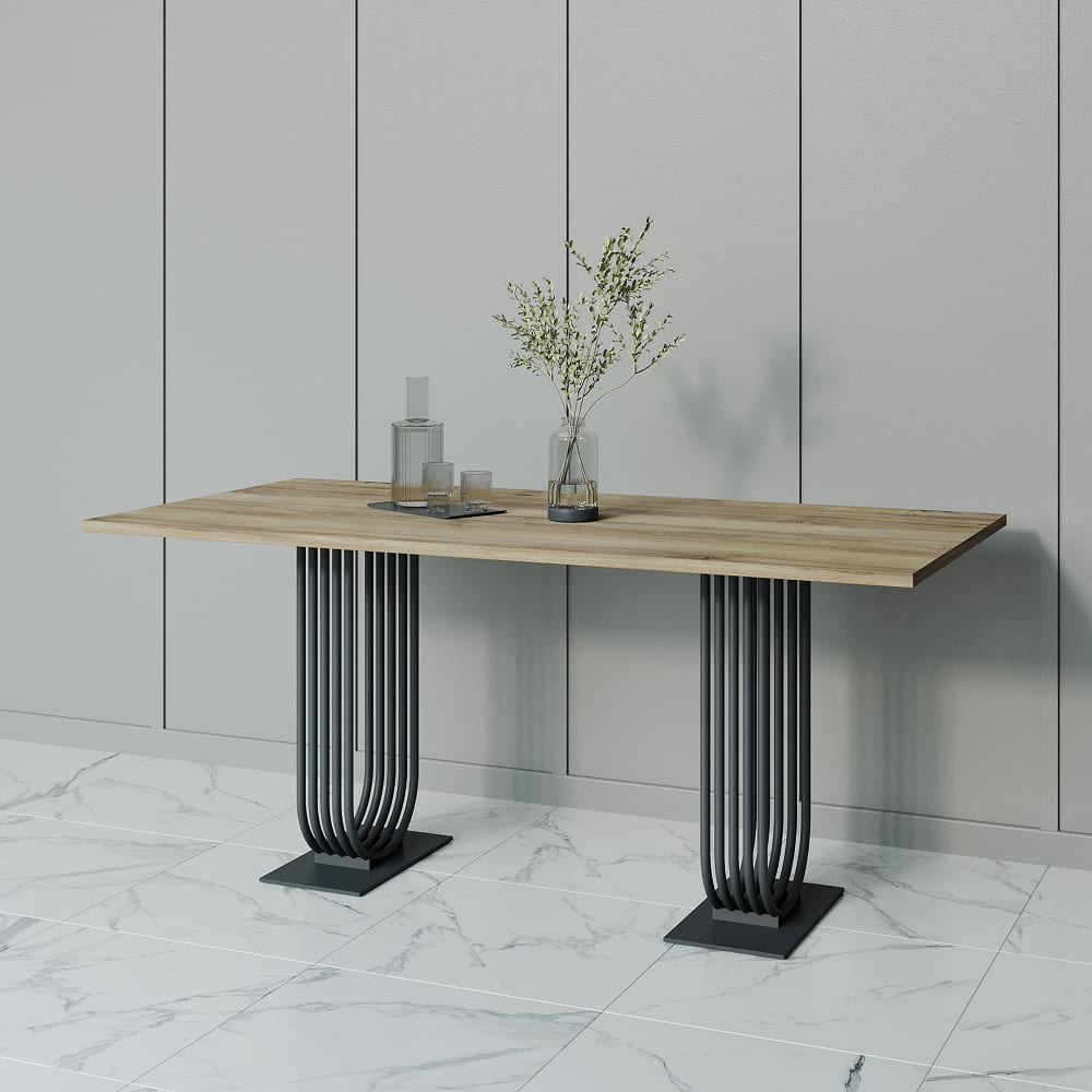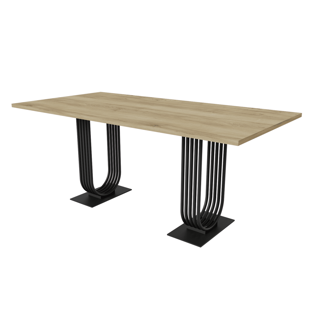 Лаконичный внешний вид прямоугольного стола серии ARFEO Duo, основанный на строгих прямых линиях, обеспечивает универсальность, позволяя органично вписаться в любой интерьер – от уютной домашней кухни до современного офисного пространства. Столешница, изготовленная из высококачественного ЛДСП толщиной 2.5 см, отличается не только прочностью и долговечностью, но и приятной на ощупь текстурой. Основа стола – прочный металлический каркас, выполненный из трубы диаметром 2 см. Такая конструкция гарантирует не только впечатляющую несущую способность, позволяющую комфортно разместить за столом от 6 до 8 человек, но и неповторимый индустриальный шарм. Обработка металла – это высококачественная матовая порошковая покраска, доступная в трех классических цветах: золотом, черном и белом. Порошковое покрытие не только обеспечивает привлекательный внешний вид, но и защищает металл от коррозии и механических повреждений, гарантируя долгий срок службы изделия.
