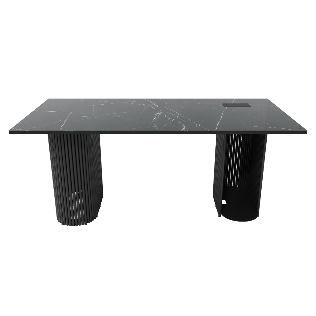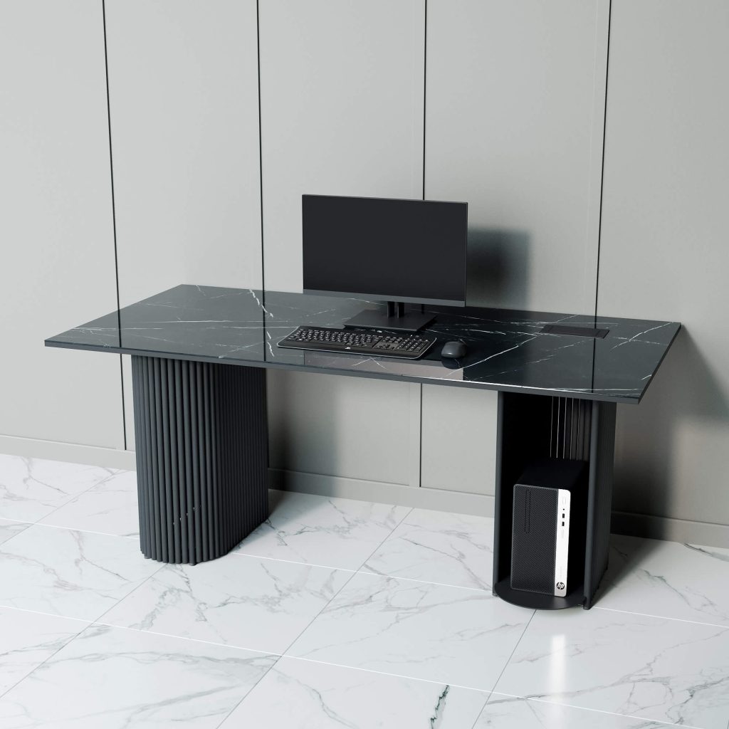 Рабочий стол TRUBIS Wood + Glass темный мрамор/черный, 180 х 90 см