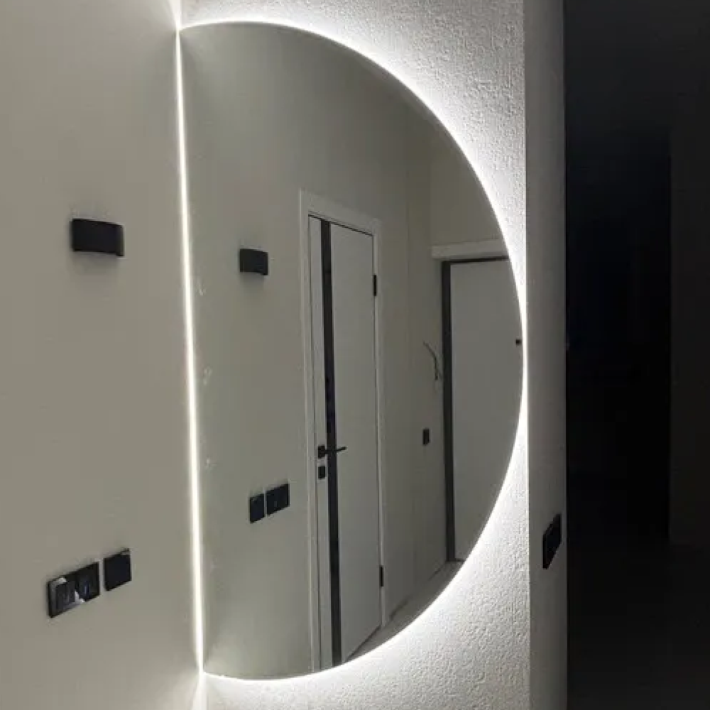 RONTUS NF LED XL – это уникальное безрамное зеркало в форме полукруга с контурной холодной подсветкой, созданное с применением передовых технологий. Оно обладает изысканным дизайном и функциональностью, которые подчеркнут уникальность вашего интерьера и придадут ему особый шарм.