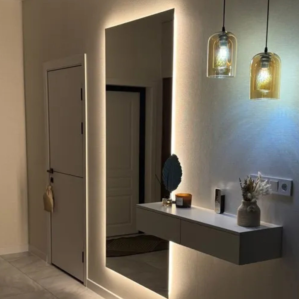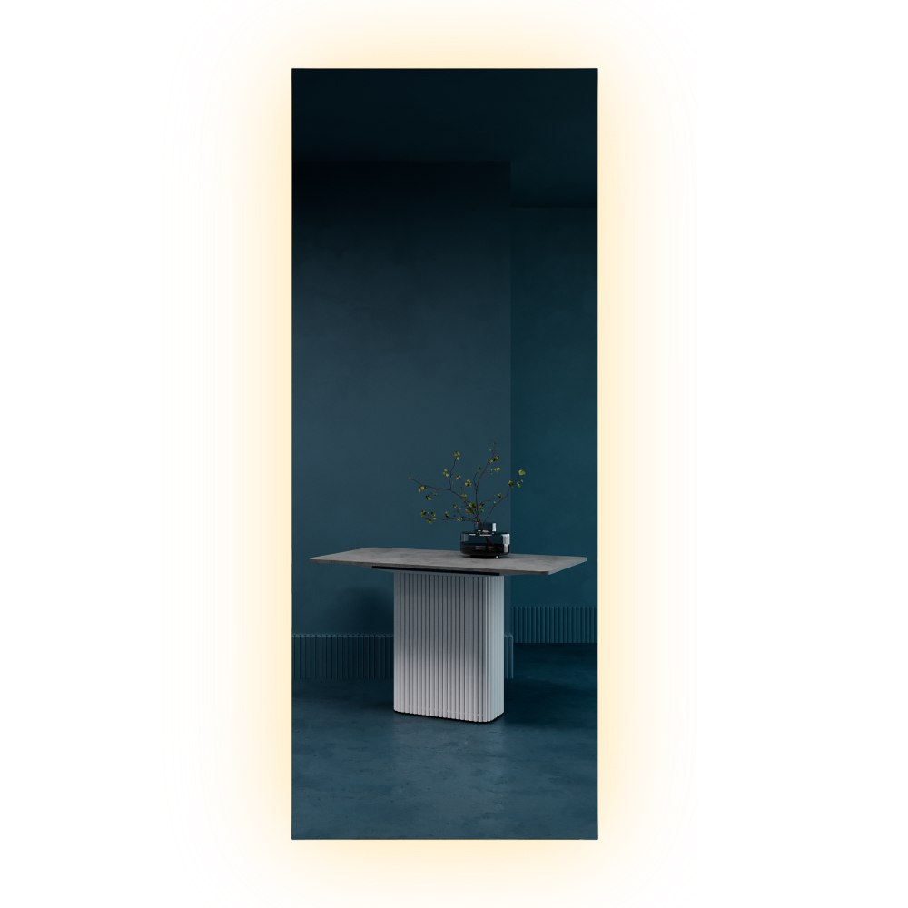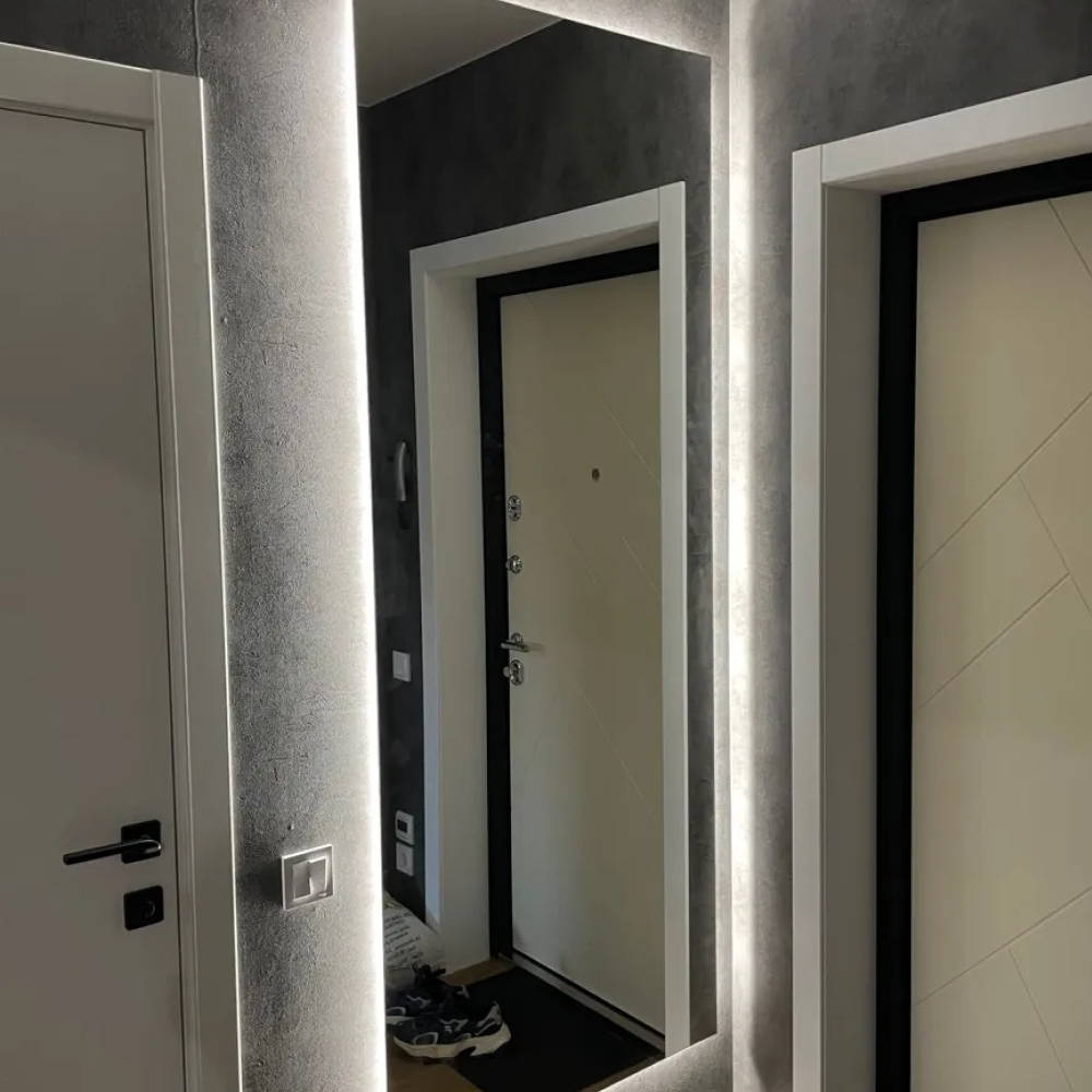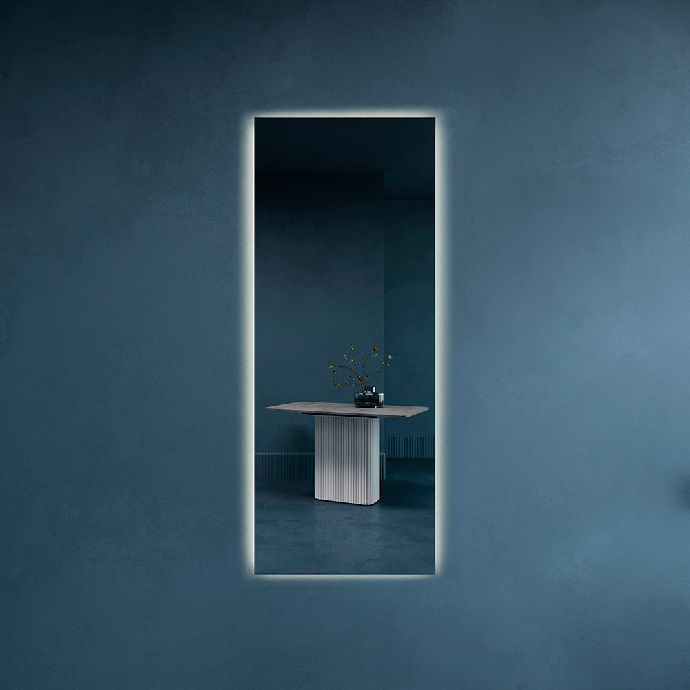 HALFEO NF LED XL Slim— это безрамное зеркало прямоугольной формы с контурной (тыльной) нейтральной подсветкой. Это современное зеркало обладает не только изысканным дизайном, но и функциональностью, которая сделает вашу жизнь более комфортной. Есть вывод 220W для подключения к сети (блок питания подсветки 12V), включение подсветки через провод от розетки. Возможно установить сенсорную кнопку на заказ в любом месте зеркала за дополнительную стоимость.