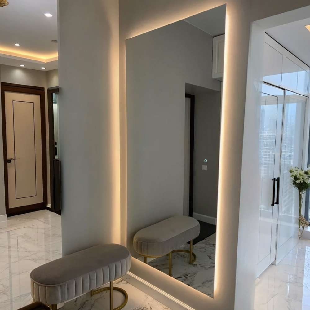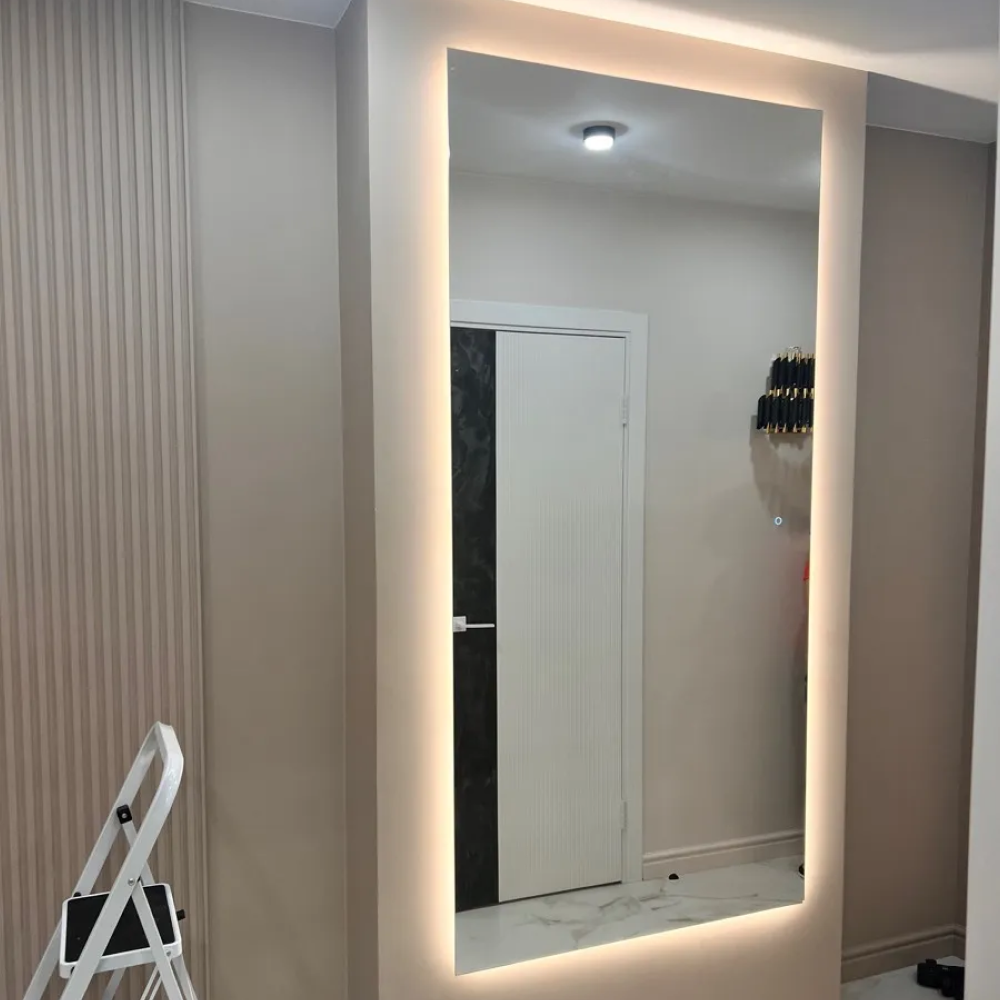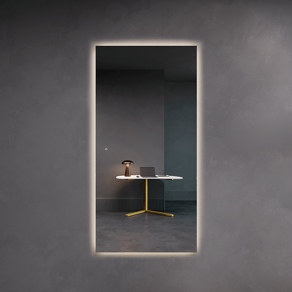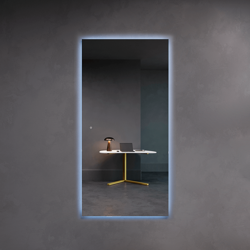 HALFEO NF LED XL — это безрамное зеркало прямоугольной формы с контурной (тыльной) подсветкой 3 в 1, созданное с применением передовых технологий. Это современное зеркало обладает не только изысканным дизайном, но и функциональностью, которая сделает вашу жизнь более комфортной. Есть вывод 220W для подключения к сети (блок питания подсветки 12V), включение подсветки через провод от розетки. Возможно установить сенсорную кнопку на заказ в любом месте зеркала за дополнительную стоимость.