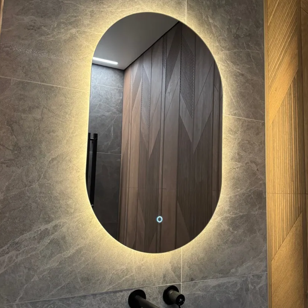 Наше безрамное зеркало овальной (капсульной) формы с контурной (тыльной) подсветкой 3 в 1, станет ярким акцентом в вашем интерьере. Каждое зеркало создано с вниманием к деталям, чтобы обеспечить высочайшее качество и эстетическую привлекательность.