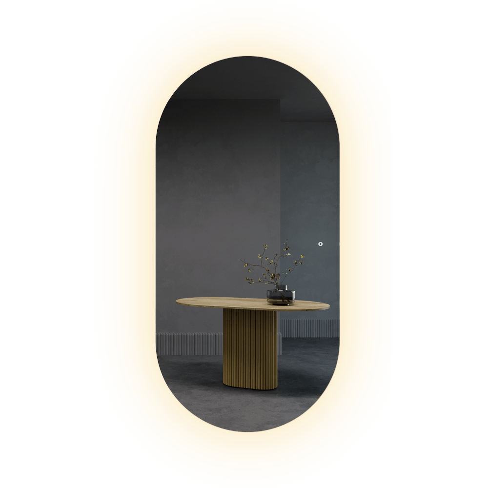 Наше безрамное зеркало овальной (капсульной) формы с контурной (тыльной) подсветкой 3 в 1, станет ярким акцентом в вашем интерьере. Каждое зеркало создано с вниманием к деталям, чтобы обеспечить высочайшее качество и эстетическую привлекательность.
