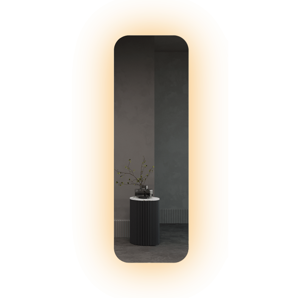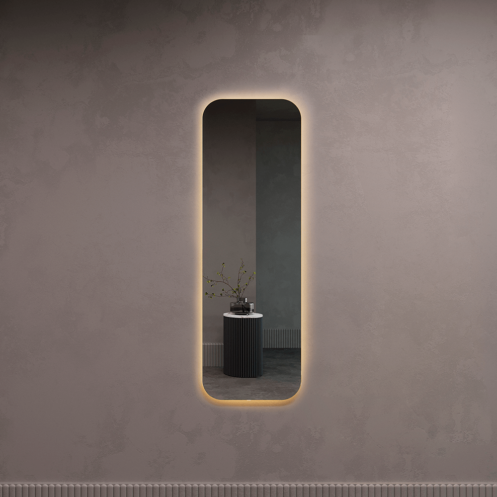 KUVINO NF LED M – это безрамное зеркало овальной (капсульной) формы с контурной (тыльной) тёплой подсветкой, которое станет ярким акцентом в вашем интерьере. Это современное зеркало сочетает функциональность, элегантность и инновационные технологии.