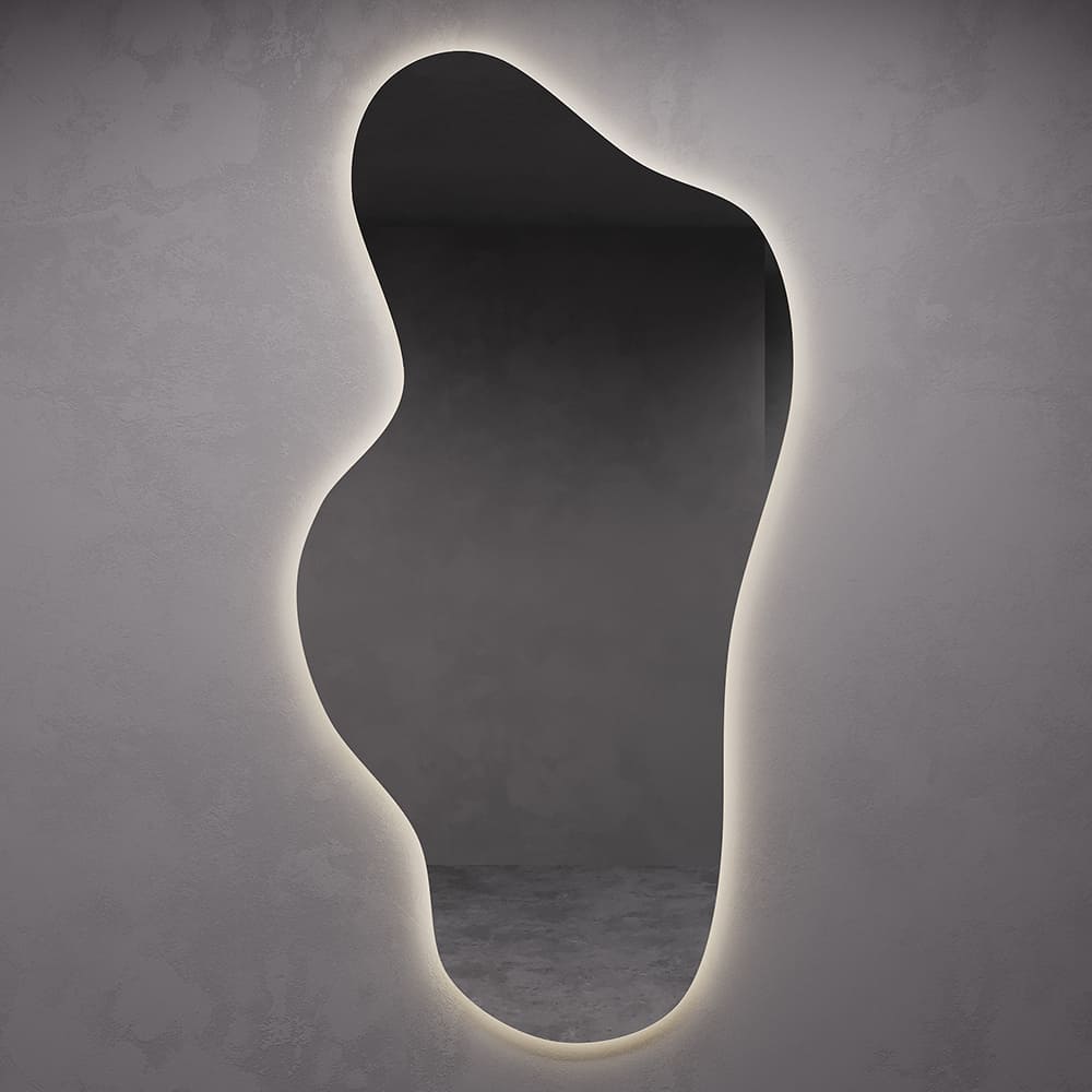 Фигурное безрамное зеркало SKYSO 2 NF LED — стильный декоративный элемент. Светодиодная лента по периметру создает мягкий, нейтральный свет для расслабляющей атмосферы.