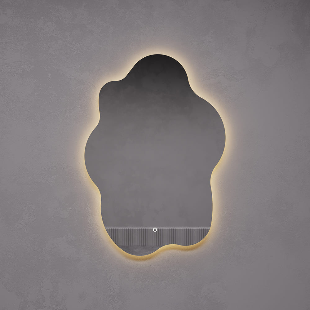 Фигурное безрамное зеркало SKYSO NF LED — стильный декоративный элемент. Контурная (тыльная) подсветка 3 в 1 по периметру создает мягкое и приятное освещение, а сенсорная кнопка позволяет регулировать температуру и яркость света. Меняйте цвет одним касанием, а яркость — удержанием кнопки. Все выбранные вами настройки зеркало сохранит автоматически. Подложка изготовлена из МДФ с матовым светорассеивателем, защищающим подсветку от пыли и влаги, что увеличивает долговечность. Оснащено выводом на 220В для подключения к сети, управление — через выключатель на стене или розетку.