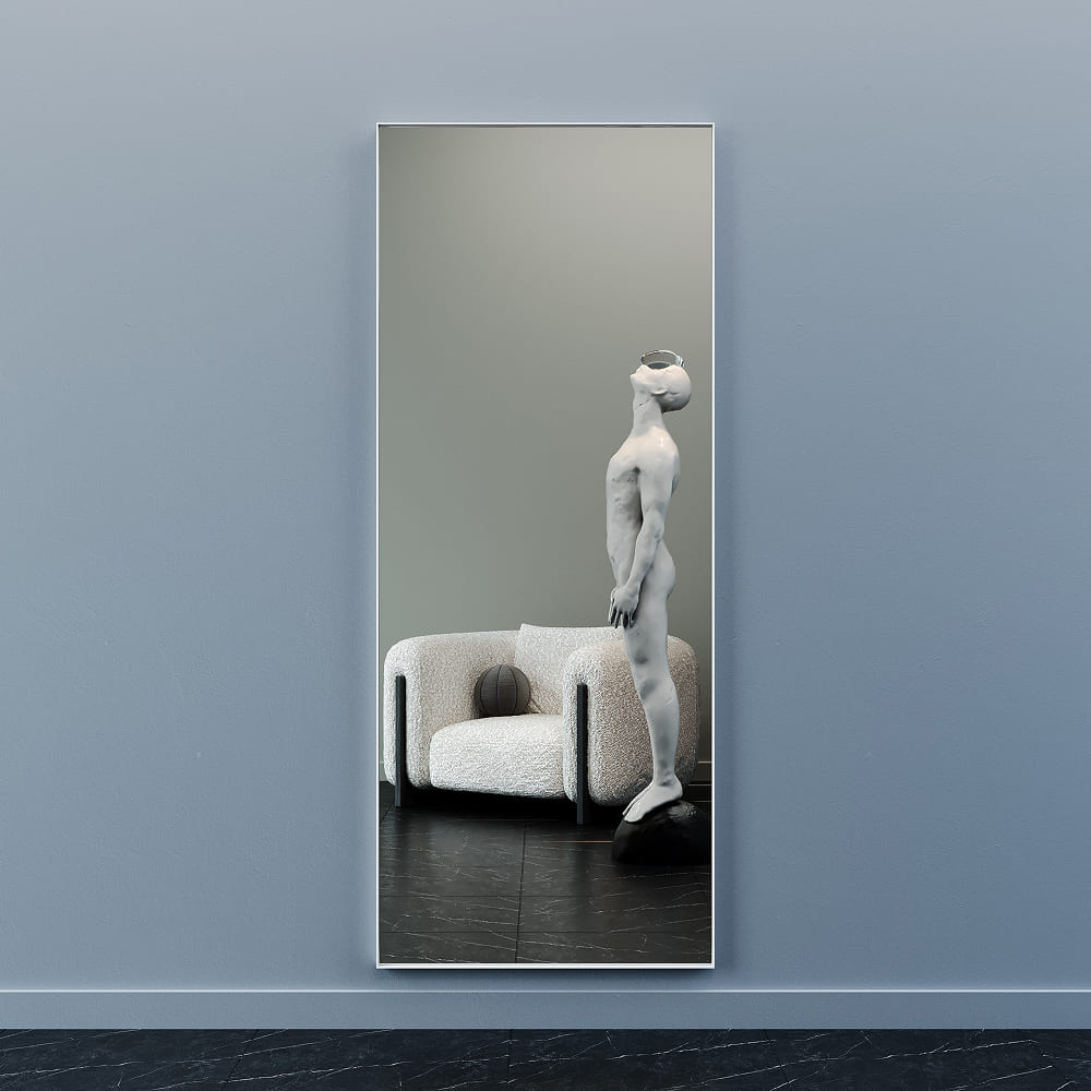 Большое прямоугольное зеркало HALFEO в тонкой металлической раме ручной работы. Зеркало в полный рост может быть как настенным, так и напольным. Производится как стандартно в тонкой раме 0.4*4 см с выступом рамы 1.5 см, так и в толстой раме 2*2 см. На тыльной стороне рамы присутствуют отверстия для монтажа на стену. Также зеркало можно просто облокотить об стену и поставить его под удобным углом наклона.