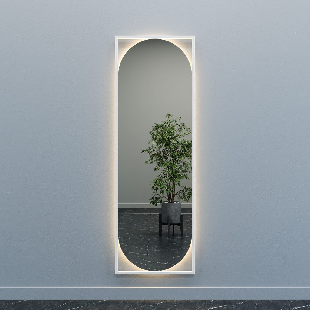 Зеркало в белой раме с теплой подсветкой, KVADEN L LED, 180 х 60 см