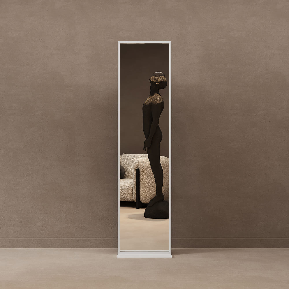 Зеркало во весь рост ZELISO в прямоугольной раме на ножке – это элегантное и практичное решение для дома или коммерческого пространства. Его лаконичный дизайн с эффектом утопленного зеркала придает интерьеру изысканность и визуальную глубину. Благодаря универсальной стилистике зеркало органично впишется в прихожую, спальню или гостиную, а также станет функциональным элементом в магазинах, салонах и шоурумах, заменяя сразу несколько зеркал.