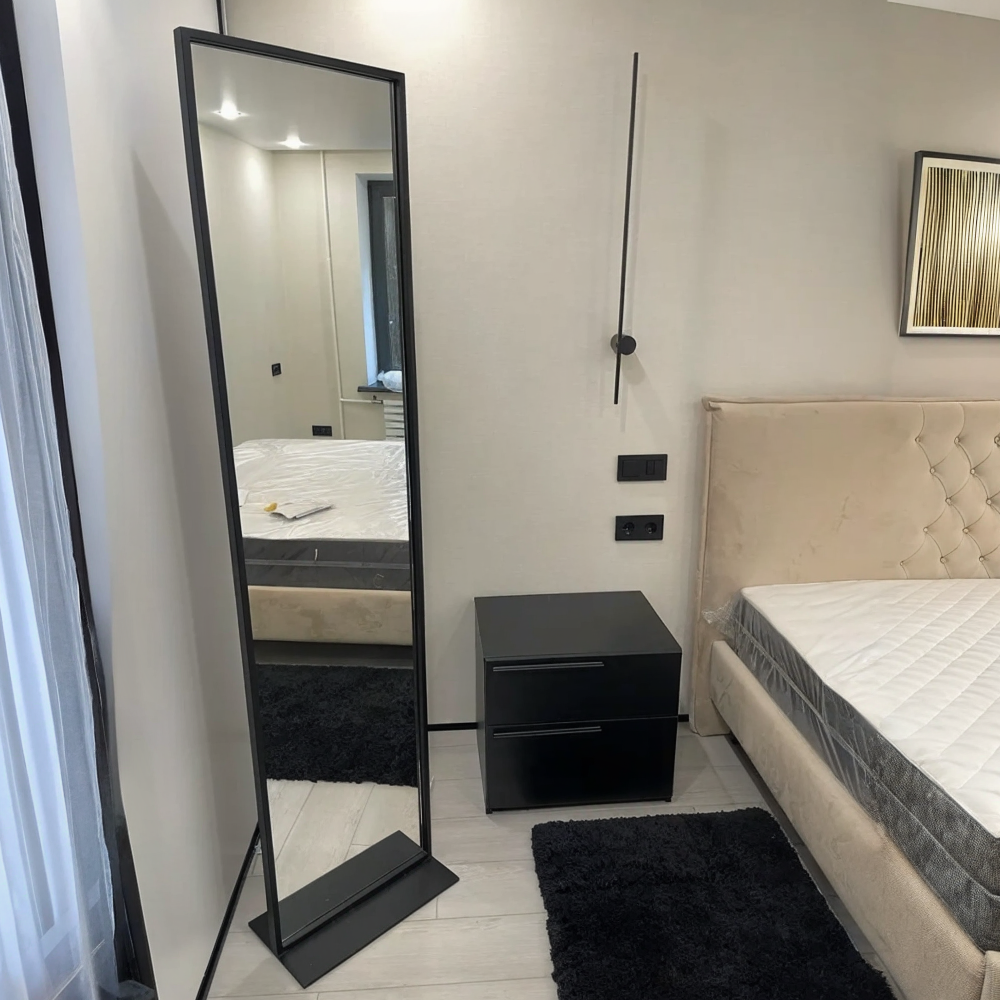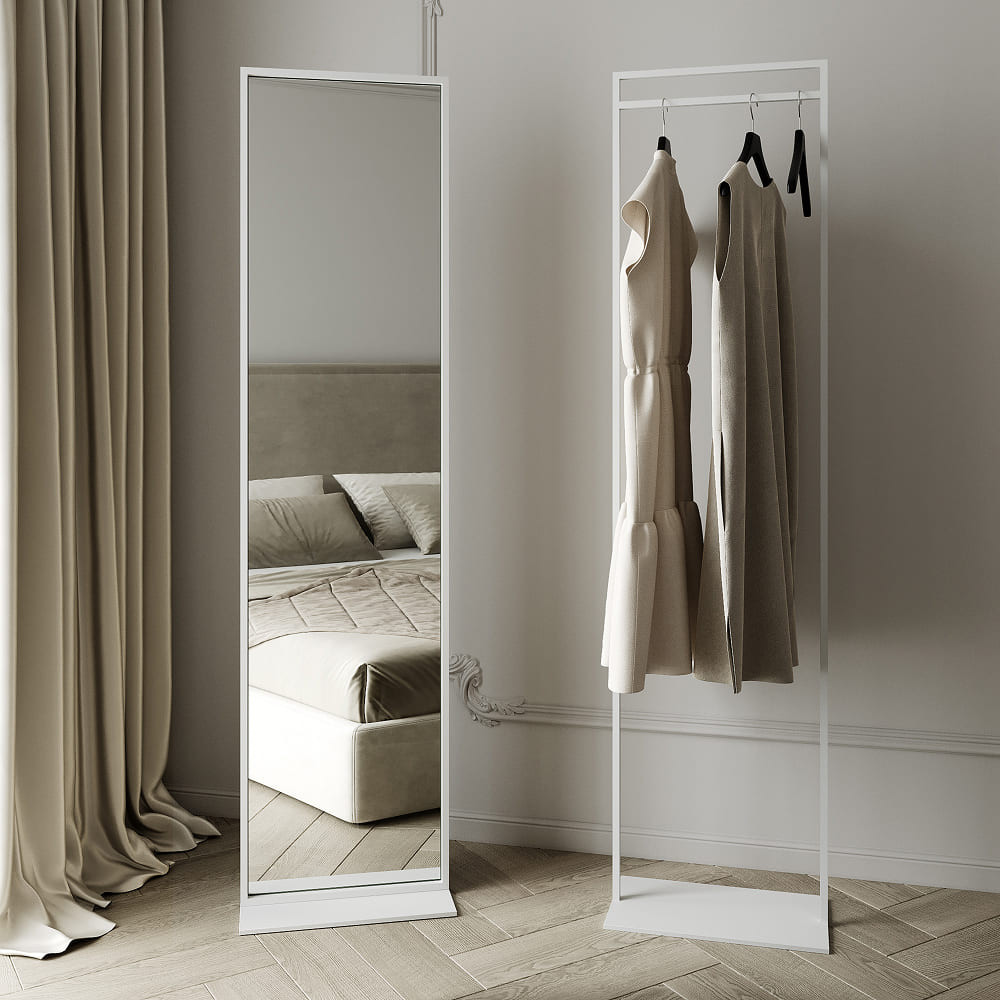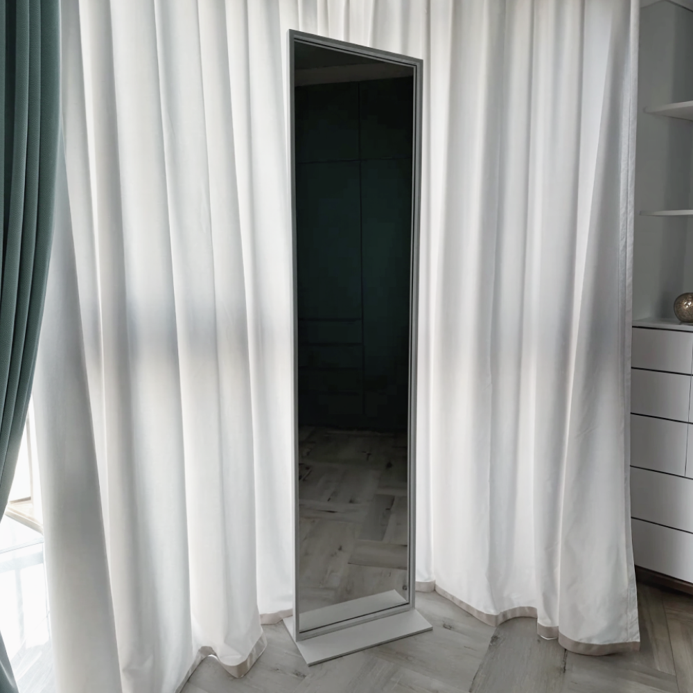 Зеркало во весь рост ZELISO в прямоугольной раме на ножке – это элегантное и практичное решение для дома или коммерческого пространства. Его лаконичный дизайн с эффектом утопленного зеркала придает интерьеру изысканность и визуальную глубину. Благодаря универсальной стилистике зеркало органично впишется в прихожую, спальню или гостиную, а также станет функциональным элементом в магазинах, салонах и шоурумах, заменяя сразу несколько зеркал.