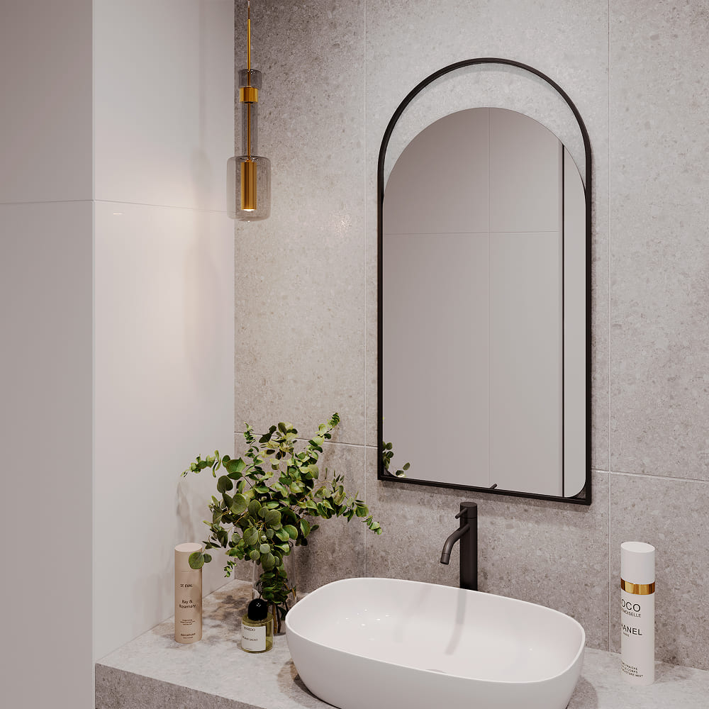 Современное арочное зеркало будет прекрасно смотреться в любом интерьере – как в домашнем, так и в коммерческом или общественном. Благодаря качественному металлу с влагостойкой порошковой окраской рамное зеркало подходит для помещений с высокой влажностью.
