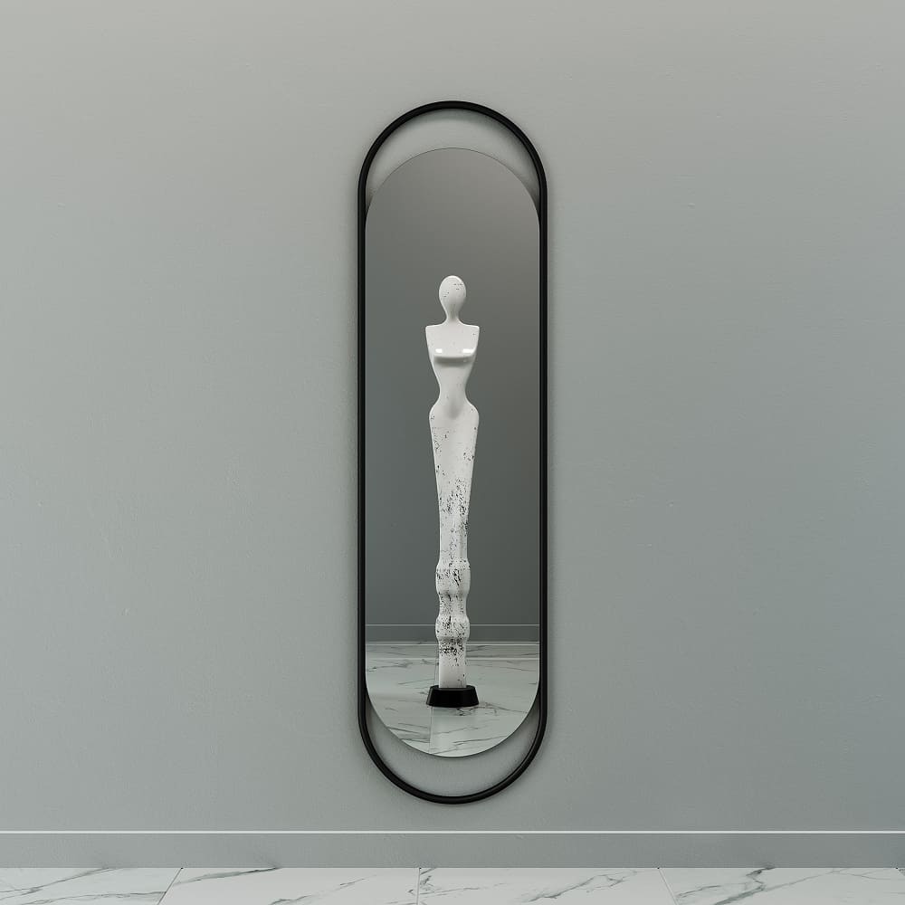 Овальное настенное зеркало EVELIX L впишется в современный интерьер вашего дома, коммерческого или общественного пространства. Рамное зеркало EVELIX L выполнено из высококачественного металла с влагостойкой порошковой окраской, что делает его подходящим для помещений с повышенной влажностью. Полотно зеркала не тонировано, что позволяет ему отражать максимальное количество света и создавать пространственный эффект. Это дизайнерское зеркало, которое представлено в металлической раме, изготовленной вручную. Габаритные размеры зеркала составляют 178 х 48 см. EVELIX L имеет крепежные элементы на задней части рамы, а необходимый крепеж входит в комплект поставки. Это обеспечивает простоту и надежность установки зеркала на стену.