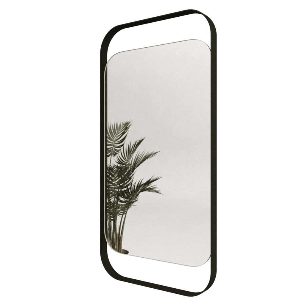 Дизайнерское настенное зеркало KELUR в тонкой металлической раме c закруглёнными углами. Эстетика с тонкими линиями подчёркивает строгий, но мягкий силуэт зеркала.