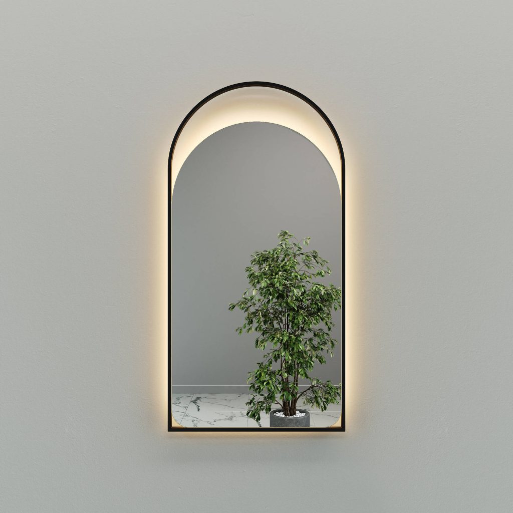 Настенное зеркало-арка ARKELO в дизайнерской металлической раме ручной работы, с контурной (тыльной) подсветкой. Зеркало в раме арочной формы прекрасно впишется как в любой интерьер и комнату, вне зависимости от назначения.