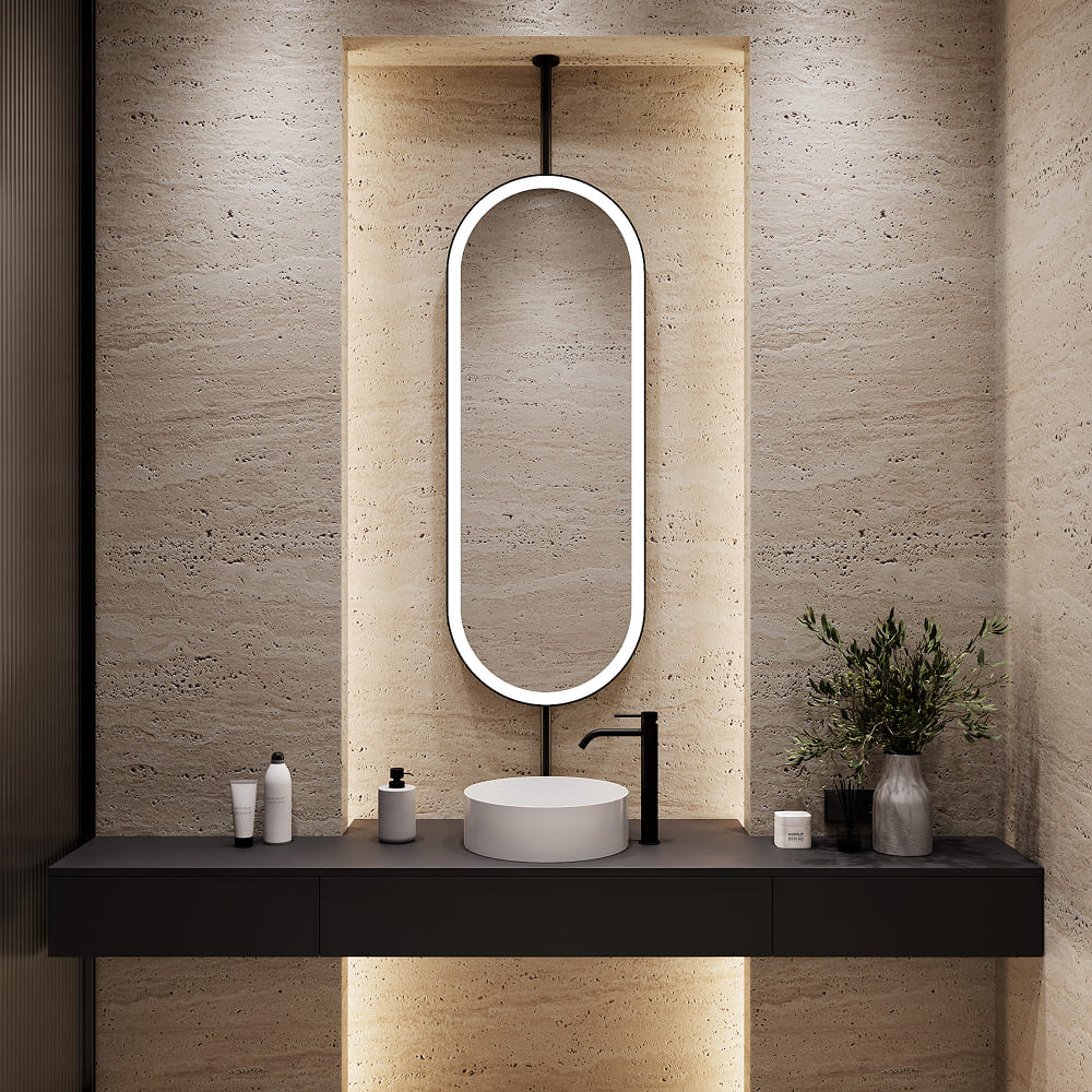 Вы также можете выбрать вариант рамы для зеркала VERUF: тонкая рама 0,4 х 4 см с выступом рамы перед зеркалом. Это позволяет вам создать зеркало, которое идеально сочетается с вашим стилем интерьера. Также предусмотрена возможность добавления подсветки, чтобы создать еще больше атмосферы.