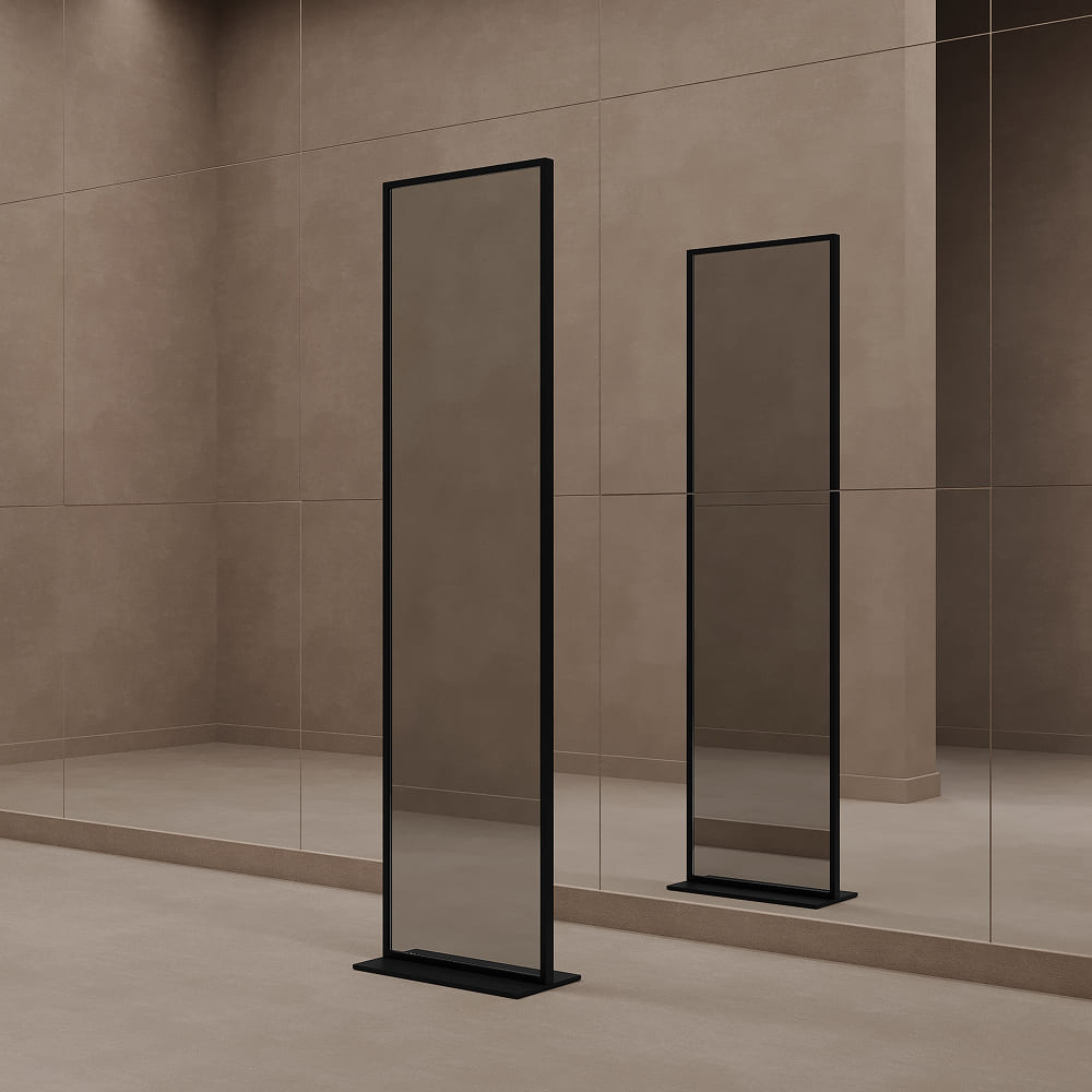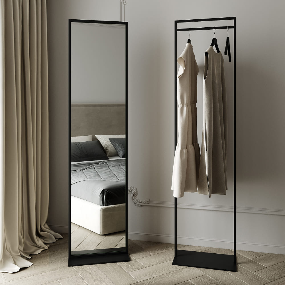 Зеркало во весь рост ZELISO в прямоугольной раме на ножке – это элегантное и практичное решение для дома или коммерческого пространства. Его лаконичный дизайн с эффектом утопленного зеркала придает интерьеру изысканность и визуальную глубину. Благодаря универсальной стилистике зеркало органично впишется в прихожую, спальню или гостиную, а также станет функциональным элементом в магазинах, салонах и шоурумах, заменяя сразу несколько зеркал.