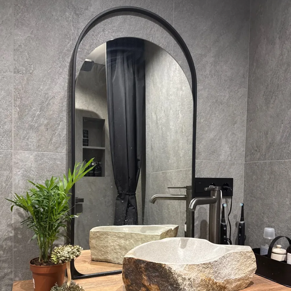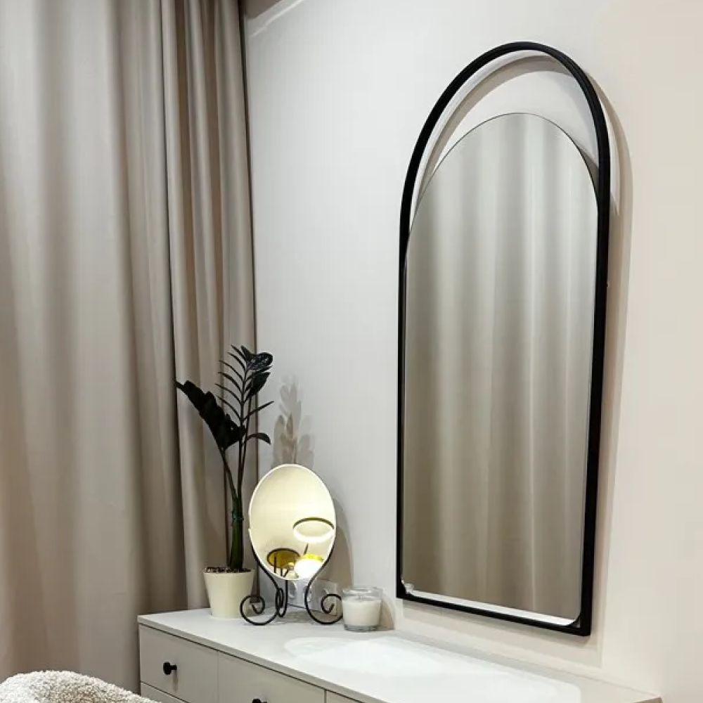 Современное арочное зеркало будет прекрасно смотреться в любом интерьере – как в домашнем, так и в коммерческом или общественном. Благодаря качественному металлу с влагостойкой порошковой окраской рамное зеркало подходит для помещений с высокой влажностью.