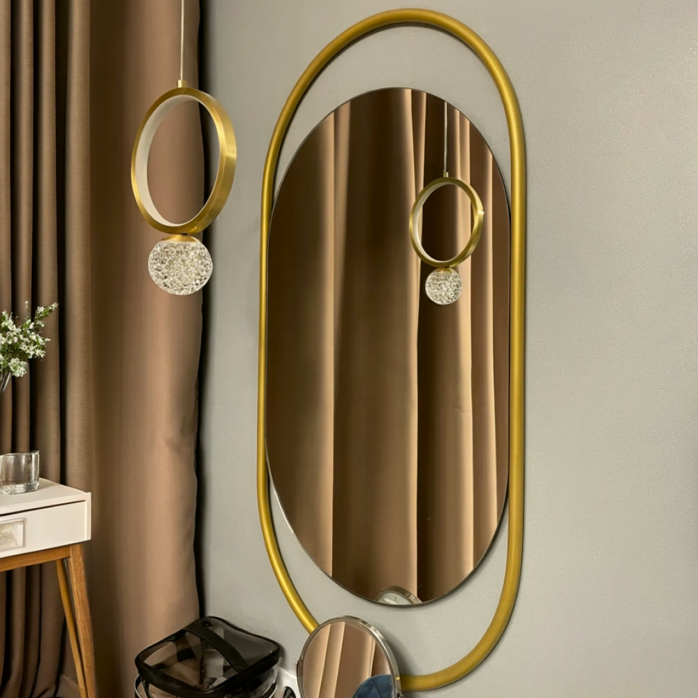 Овальное настенное зеркало EVELIX S впишется в современный интерьер вашего дома, коммерческого или общественного пространства. Рамное зеркало EVELIX S выполнено из высококачественного металла с влагостойкой порошковой окраской, что делает его подходящим для помещений с повышенной влажностью. Полотно зеркала не тонировано, что позволяет ему отражать максимальное количество света и создавать пространственный эффект. Это дизайнерское зеркало, которое представлено в металлической раме, изготовленной вручную. Габаритные размеры зеркала составляют 104 х 54 см. EVELIX S имеет крепежные элементы на задней части рамы, а необходимый крепеж входит в комплект поставки. Это обеспечивает простоту и надежность установки зеркала на стену.