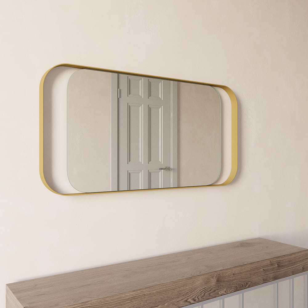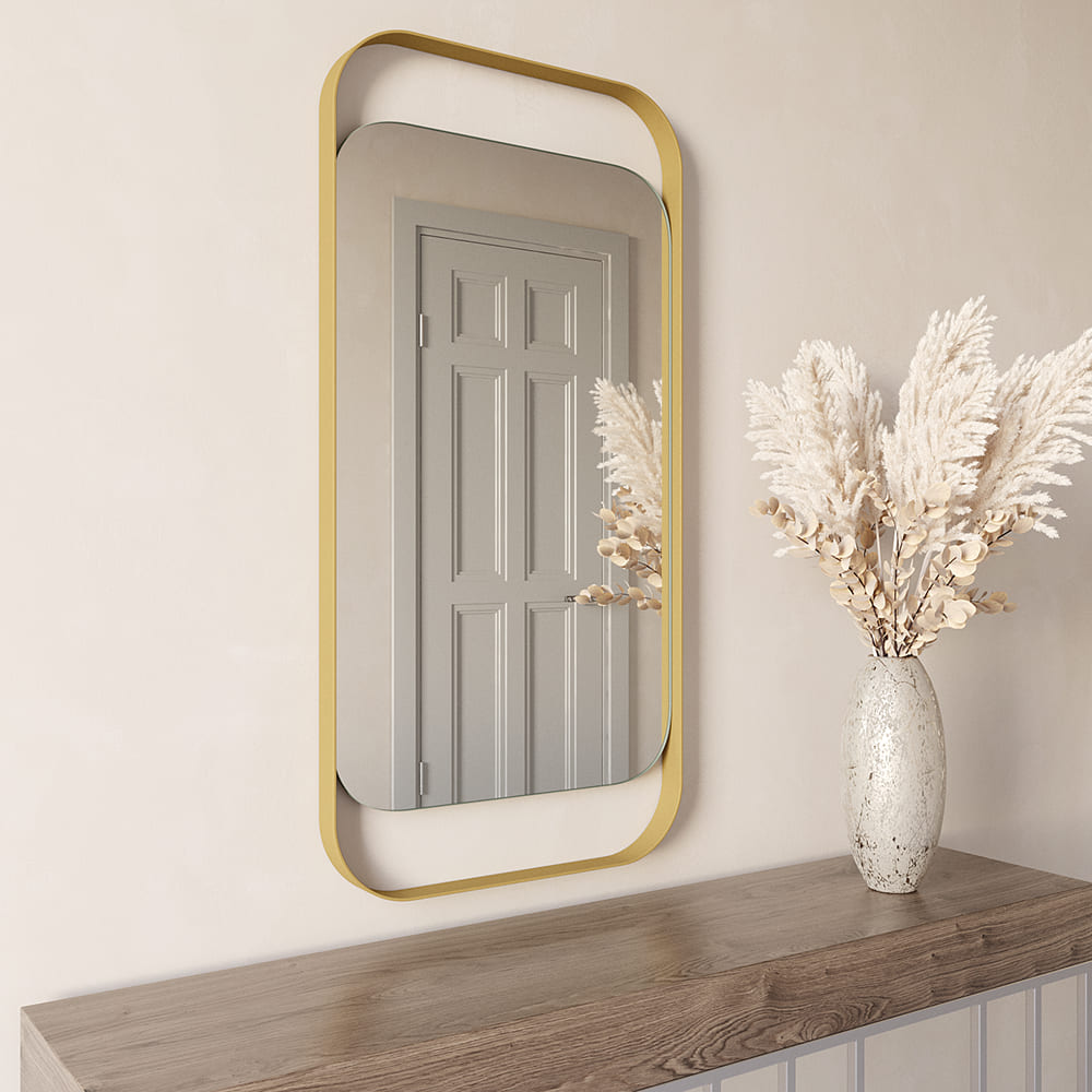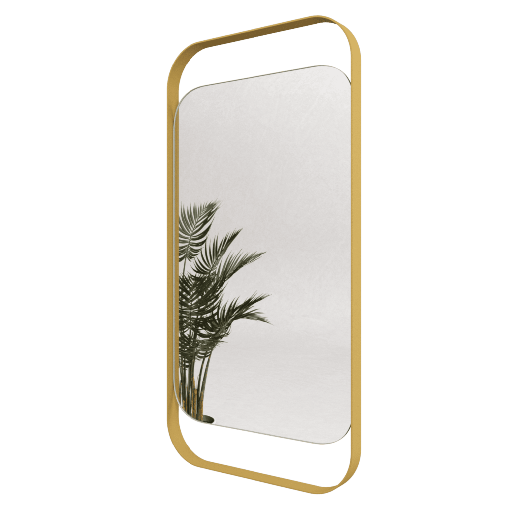 Дизайнерское настенное зеркало KELUR в тонкой металлической раме c закруглёнными углами. Эстетика с тонкими линиями подчёркивает строгий, но мягкий силуэт зеркала. Рама имеет изящный выступ 15 мм перед зеркалом (зеркало углублено в раму). На тыльной стороне рамы присутствуют крепёжные элементы и для вертикальной, и для горизонтальной установки. Саморезы в комплекте.