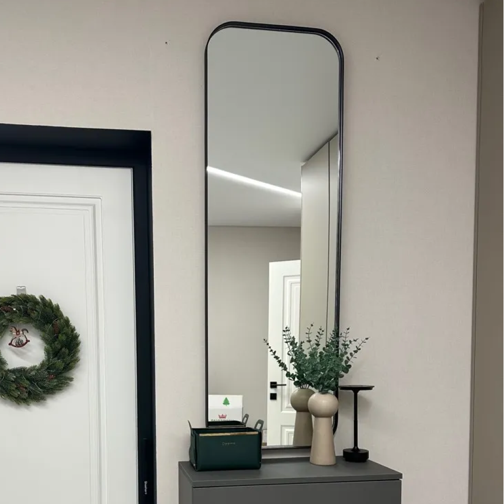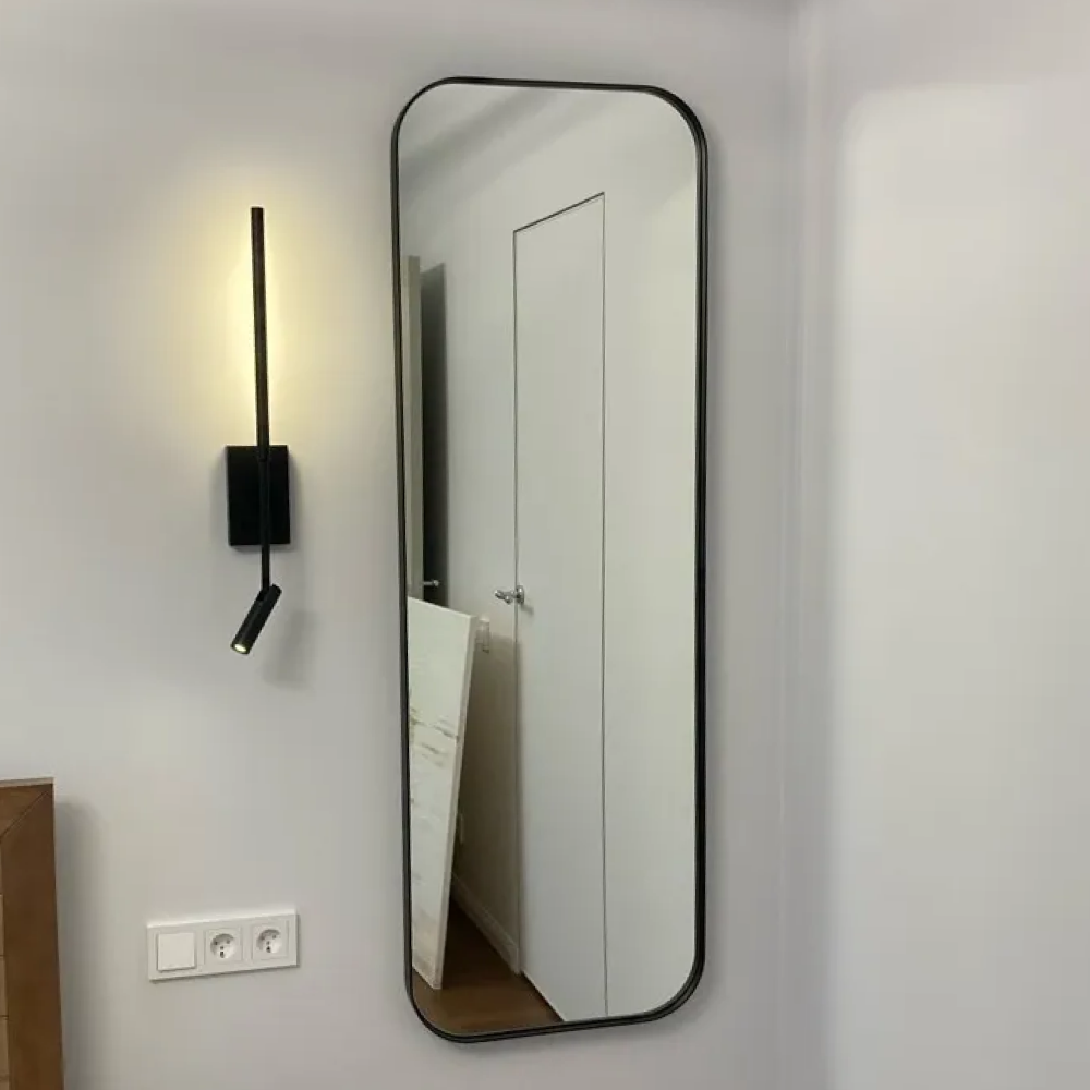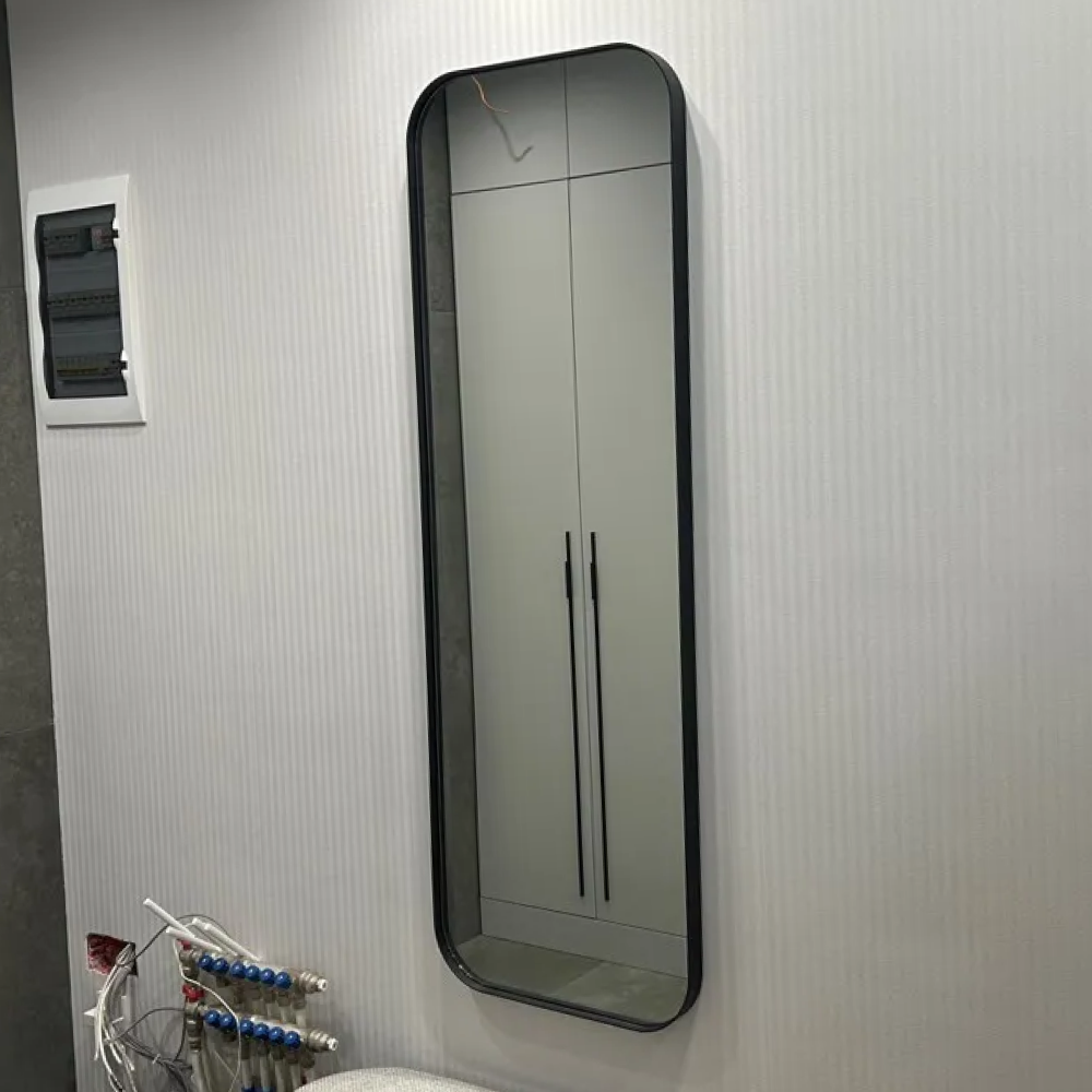 Зеркало в раме с закруглёнными углами KUVINO M – это искусство и функциональность в одном изделии. Оно представляет собой настенное зеркало в металлической раме, которая была создана с закруглением углов вручную. Габаритные размеры зеркала составляют 150 х 50 см.