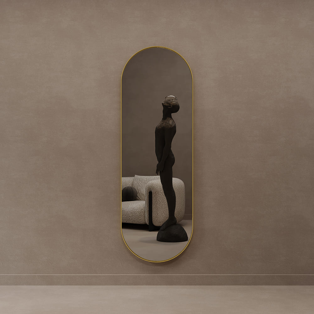 Овальное настенное зеркало NOLVIS L — это изысканное решение для вашего интерьера. Зеркало овальной формы, воплощенное в металлической раме ручной работы, визуально расширит пространство и придаст изящность вашему интерьеру. Габаритные размеры зеркала составляют 180×60 см.