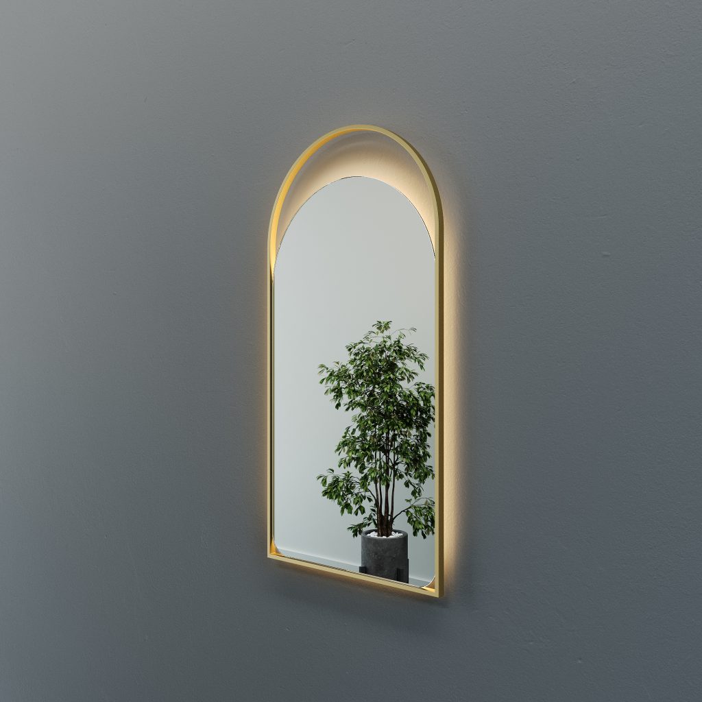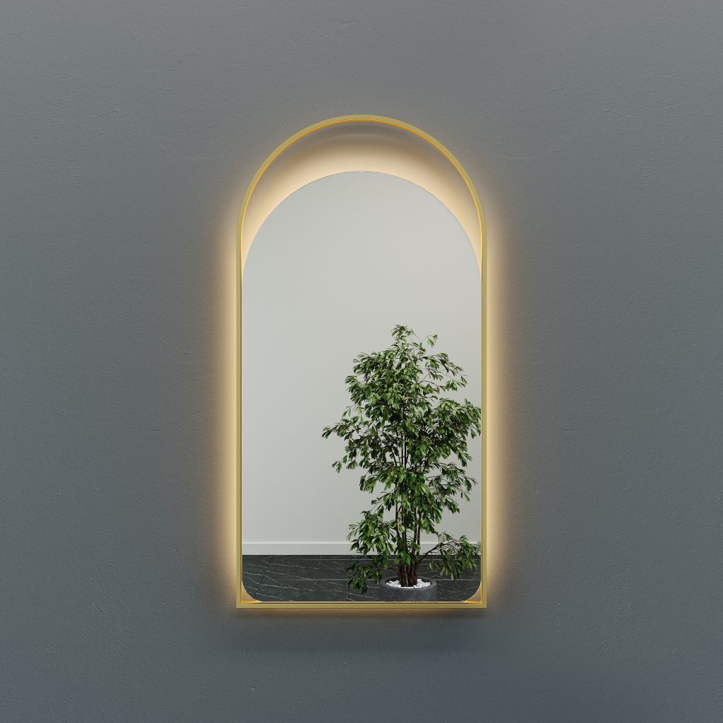 Настенное зеркало-арка ARKELO в дизайнерской металлической раме ручной работы, с контурной (тыльной) подсветкой. Зеркало в раме арочной формы прекрасно впишется как в любой интерьер и комнату, вне зависимости от назначения.