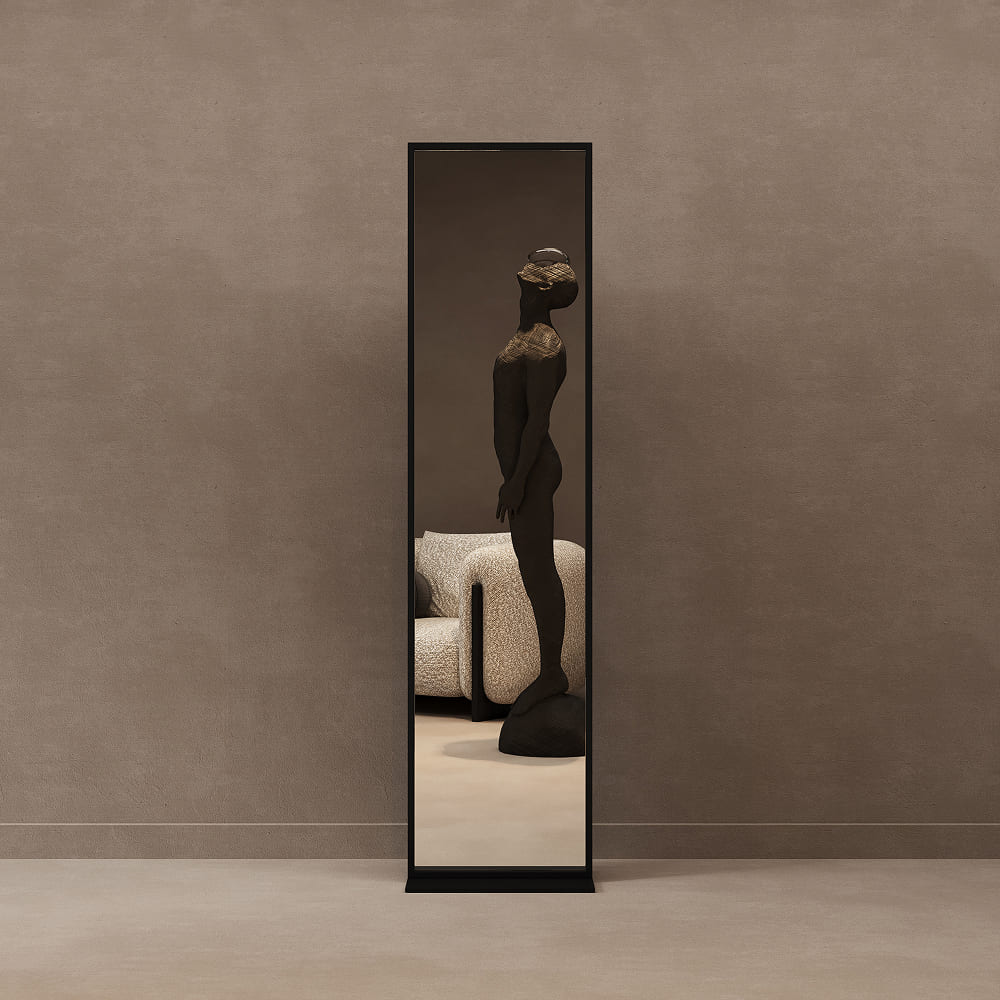 Зеркало во весь рост ZELISO в прямоугольной раме на ножке – это элегантное и практичное решение для дома или коммерческого пространства. Его лаконичный дизайн с эффектом утопленного зеркала придает интерьеру изысканность и визуальную глубину. Благодаря универсальной стилистике зеркало органично впишется в прихожую, спальню или гостиную, а также станет функциональным элементом в магазинах, салонах и шоурумах, заменяя сразу несколько зеркал.