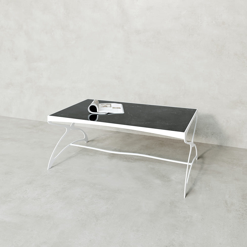 Журнальный стол ZINGEROSO Glass 102 х 62 см, темный мрамор/белый