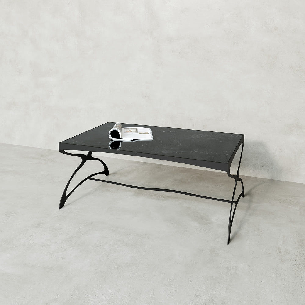 Журнальный стол ZINGEROSO Glass 102 х 62 см, темный мрамор/черный