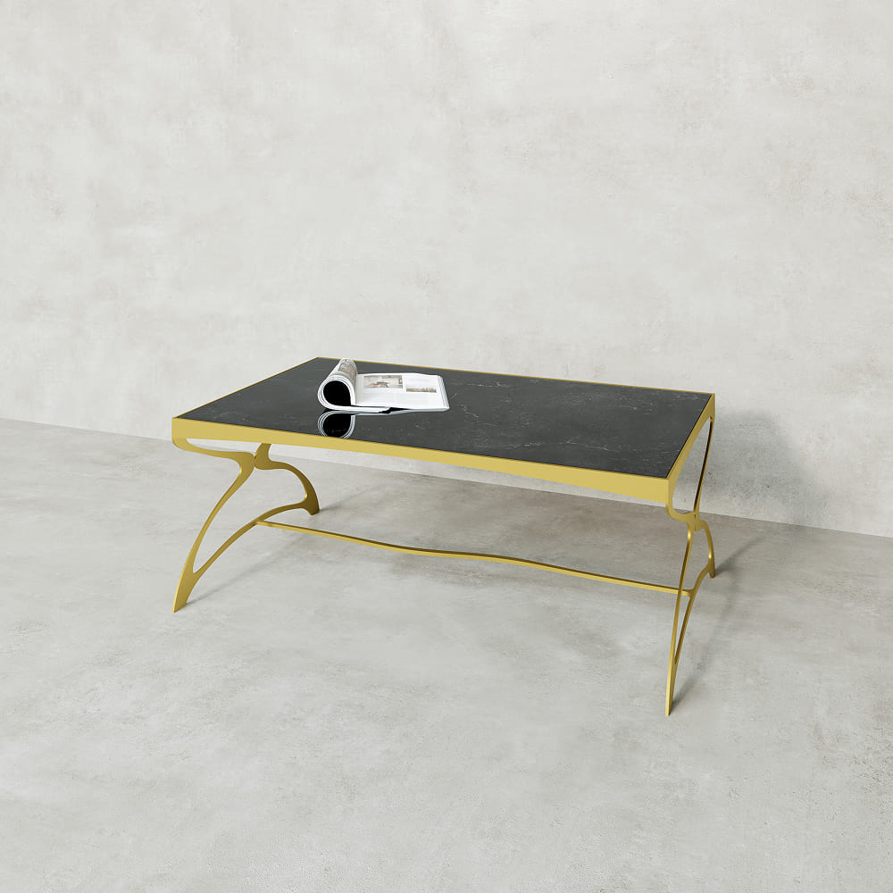 • Журнальный стол ZINGEROSO Glass 102 х 62 см, темный мрамор/золотой