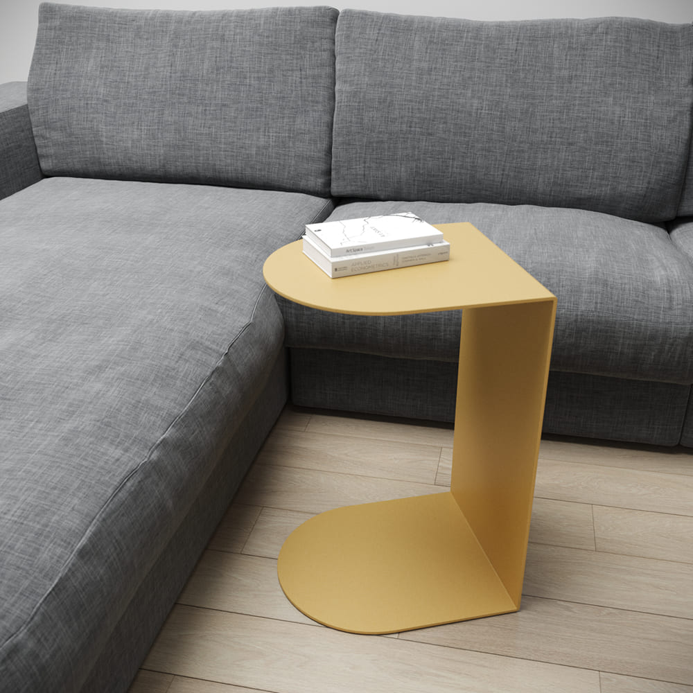 Дизайнерский металлический столик EVULO. Изготовлен полностью из металла. Нижняя платформа толщиной 0.6 см зайдёт под любой диван или кровать. Столик изготавливаются в 3 стандартных цветах – золотой, чёрный и белый. Небольшие размеры и лаконичный дизайн позволят разместить его в любом уголке вашего дома. Вы можете использовать его как маленький столик к дивану для завтрака, или как прикроватную тумбу возле кровати для книг и других мелочей.