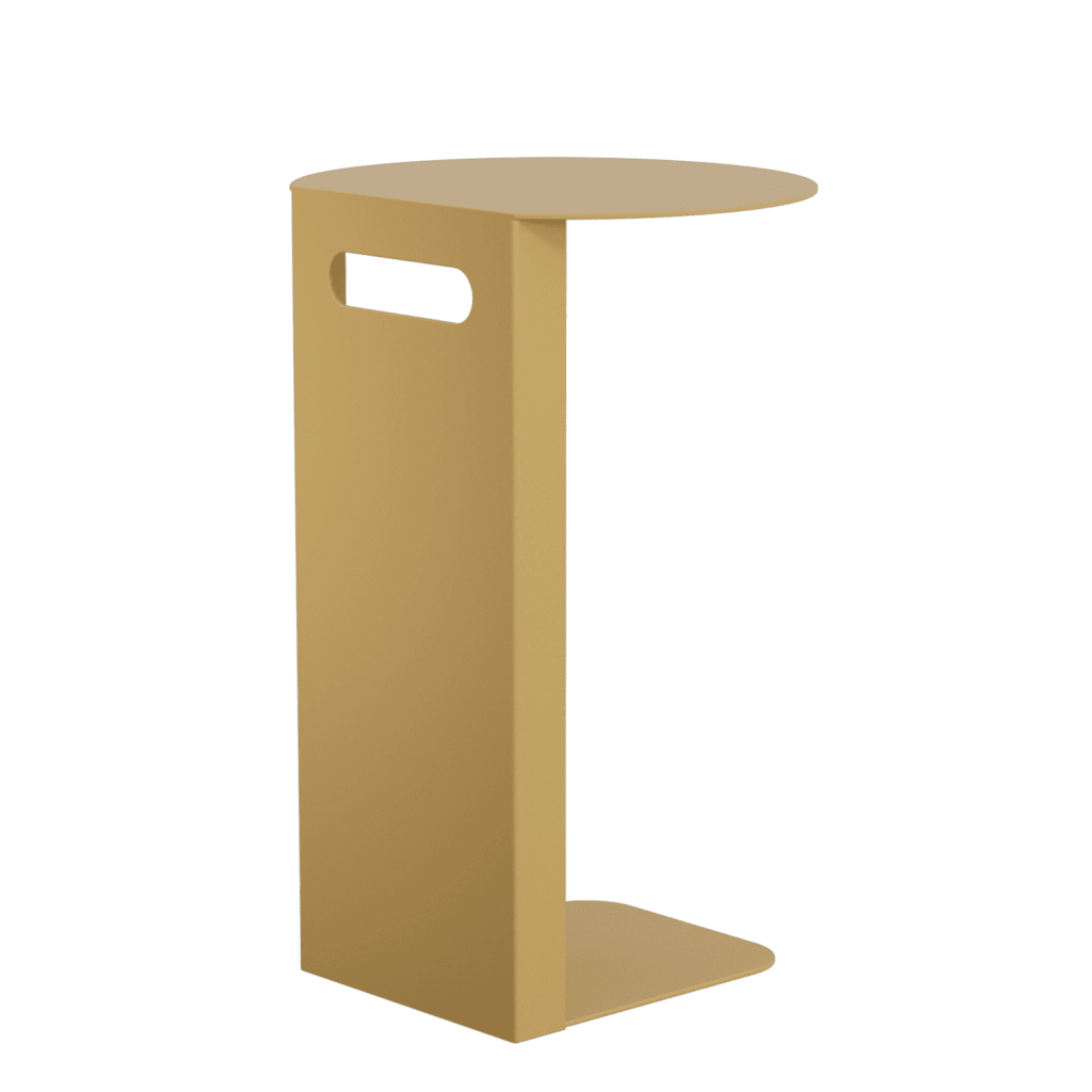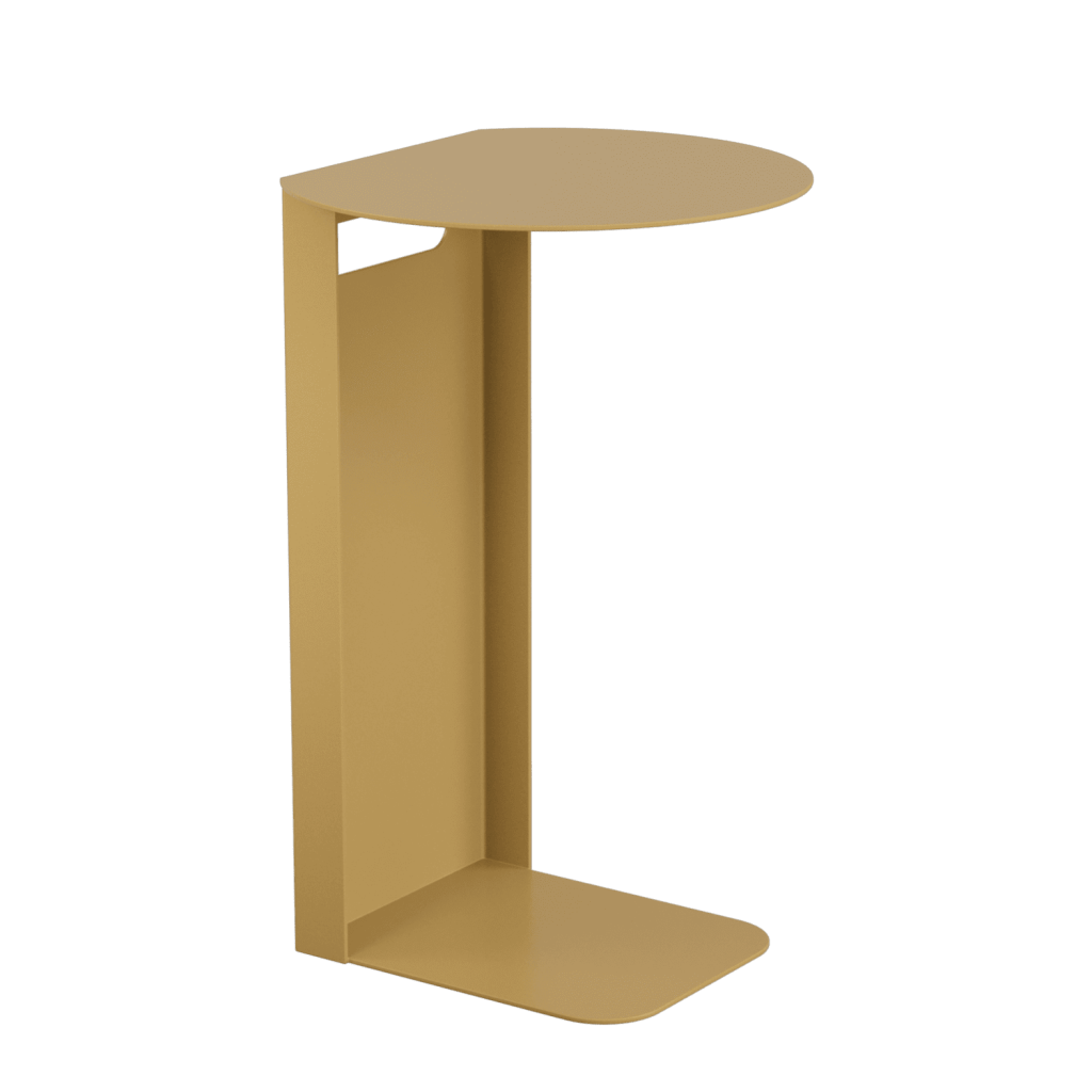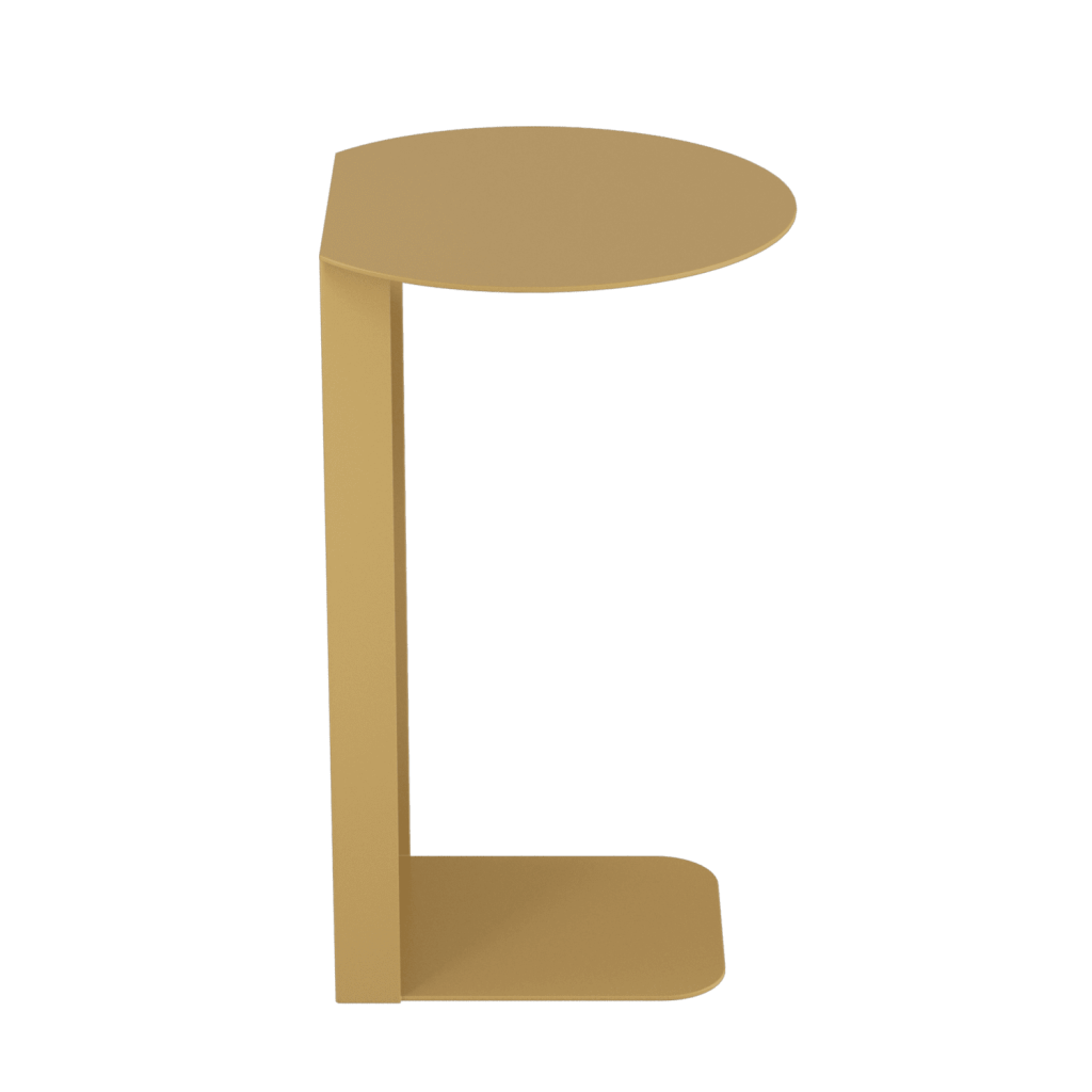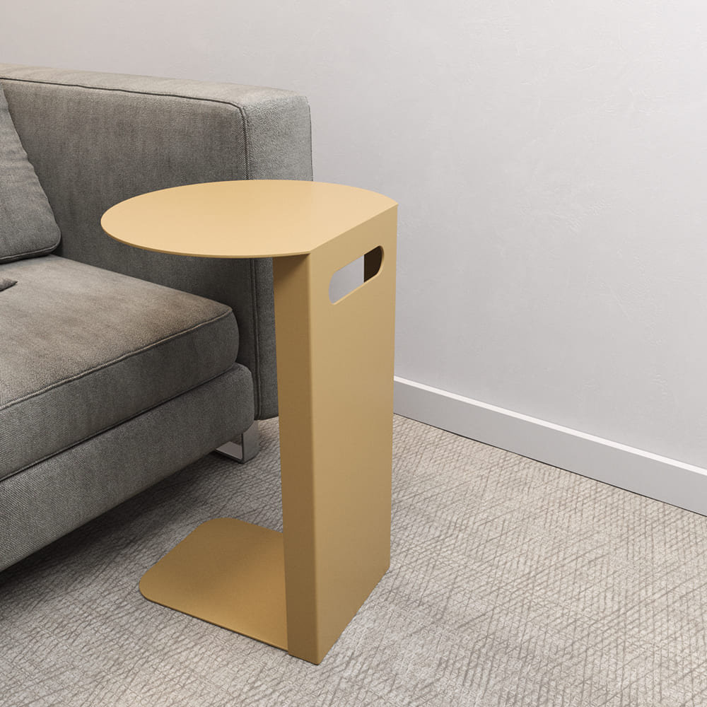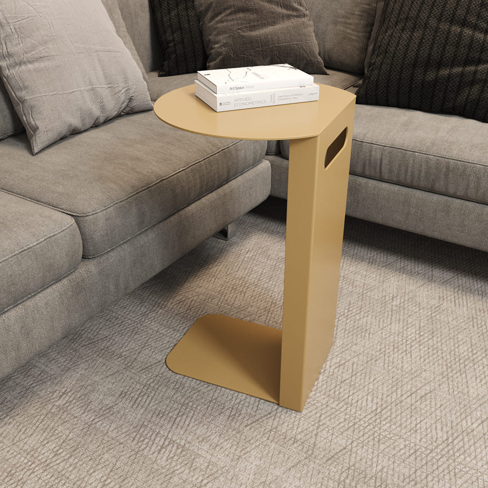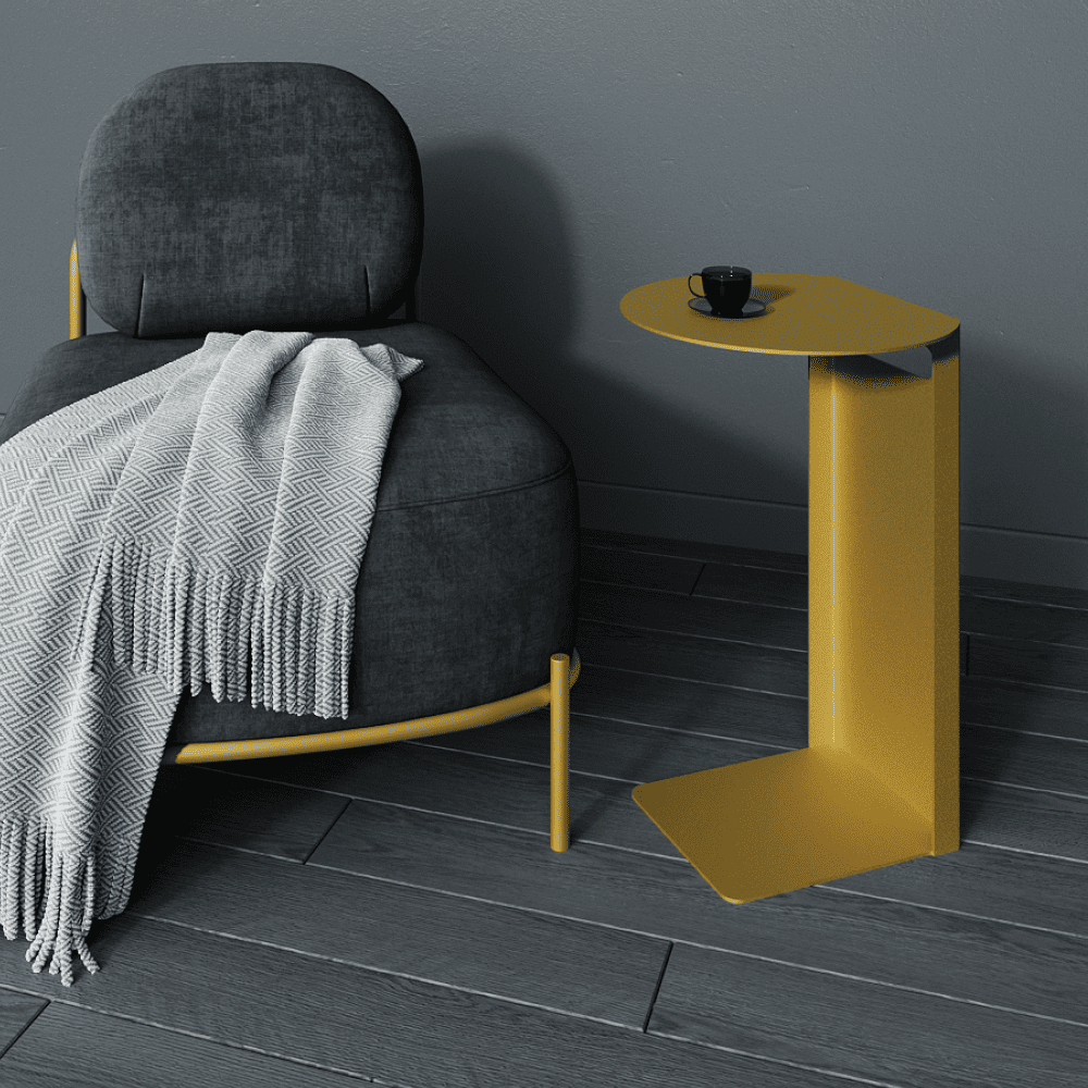 Дизайнерский металлический столик KNISO. Изготовлен полностью из металла. Нижняя платформа толщиной 0.6 см зайдёт под любой диван или кровать. Столик изготавливаются в 3 стандартных цветах – золотой, чёрный и белый. Небольшие размеры и лаконичный дизайн позволят разместить его в любом уголке вашего дома. Вы можете использовать его как маленький столик к дивану для завтрака, или как прикроватную тумбу возле кровати для книг и других мелочей.