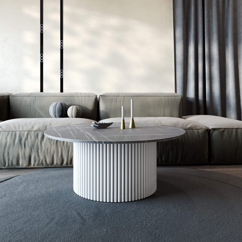 Журнальный столик TRUBIS Wood M D100 см, темный мрамор/белый