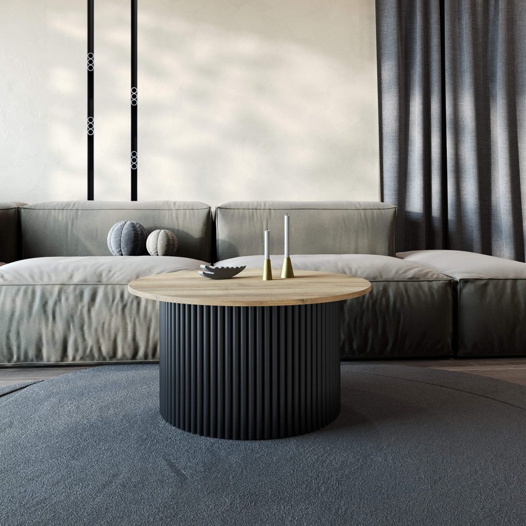Журнальный столик TRUBIS Wood M D80 см, орех/черный