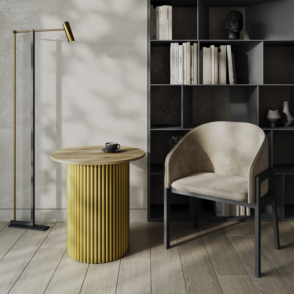 Журнальный столик TRUBIS Wood S D60 см, орех/золотой